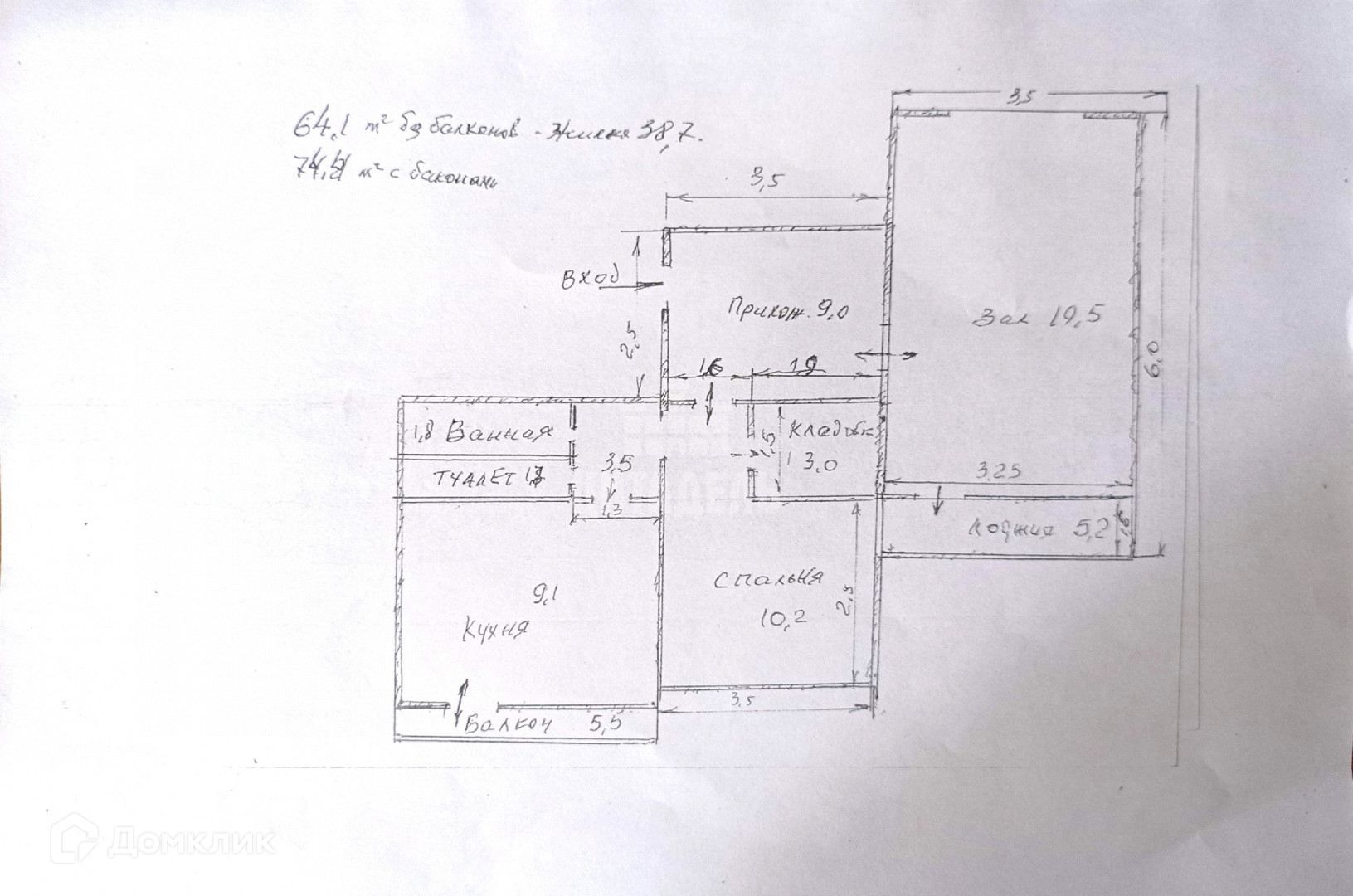 Общая площадь 64.1 м2