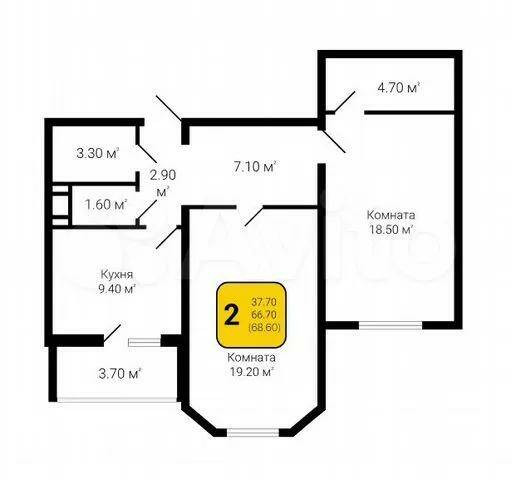 2-комнатная квартира, 67 м2, этаж 1 / 20, на продажу в Воронеже, улица Артамонова, 34Ж