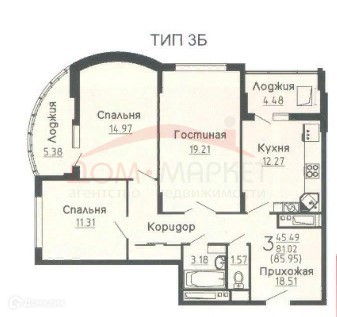 Общая площадь 86.2 м2