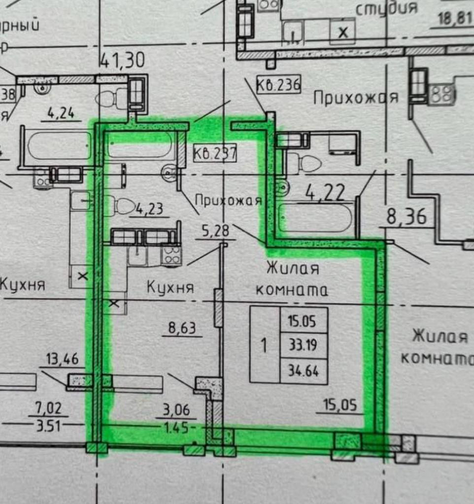 Общая площадь 34.6 м2
