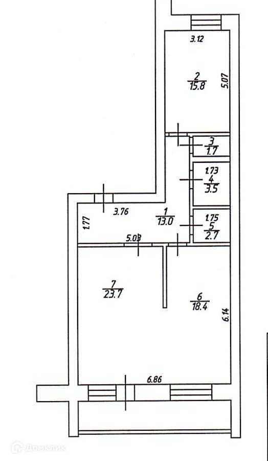 Балкон, лоджия 1 балкон
