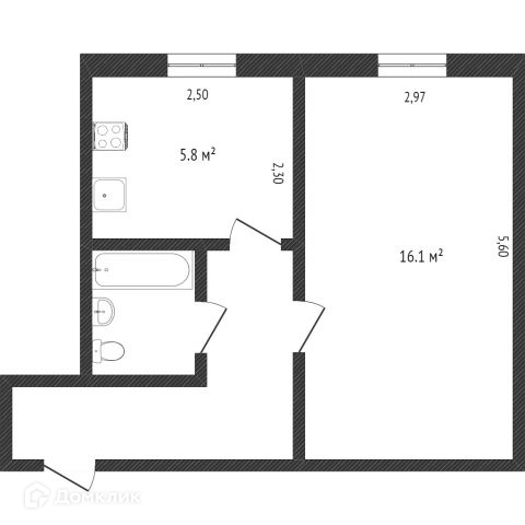 Общая площадь 29.8 м2