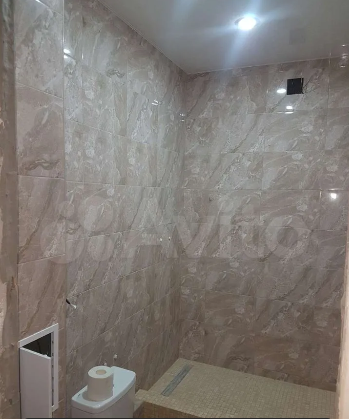 - санузел и душевая совмещенные, уложены плитка, сделаны выводы под сантехнику, есть счетчики, установлен новый унитаз. Душевая кабина сделана в виде чаши, уложена мозаикой и обработана специальными гидроизолирующими составами;