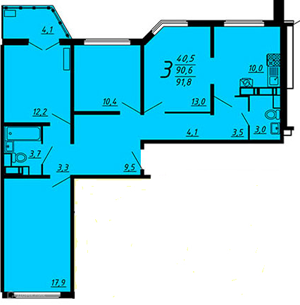 Общая площадь 90.6 м2