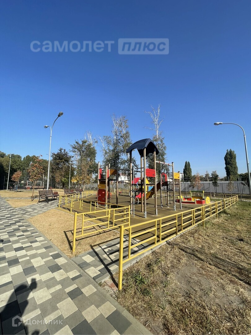 Закрытый двор, есть детская площадка, футбольное поле. Дом соседствует со сквером Железнодорожников.