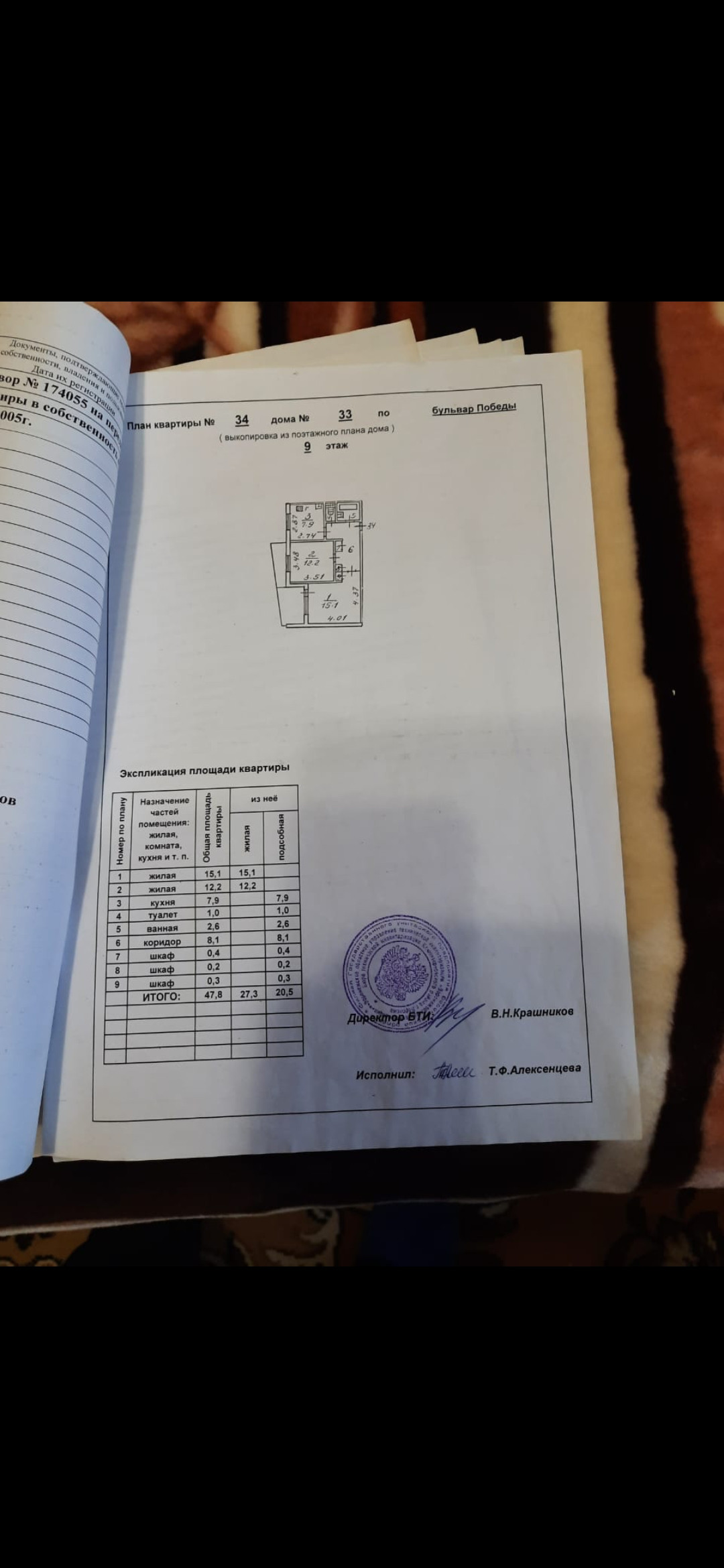 2-комнатная квартира, 47.8 м2, этаж 9 / 9, на продажу в Воронеже, бульвар Победы, 33