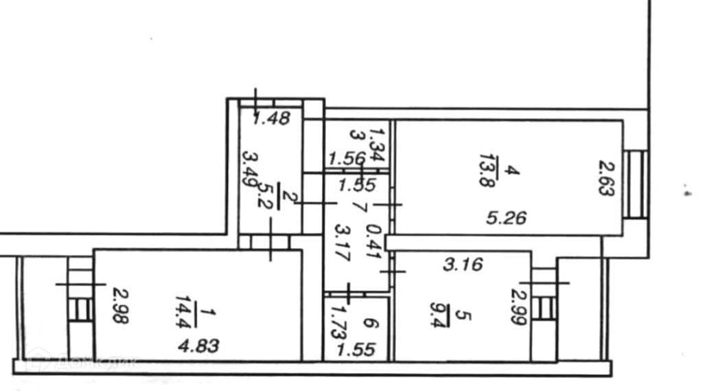 Общая площадь 52.5 м2