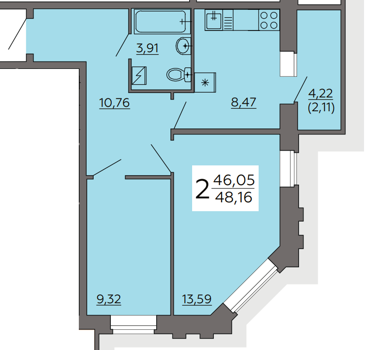 Количество комнат 2