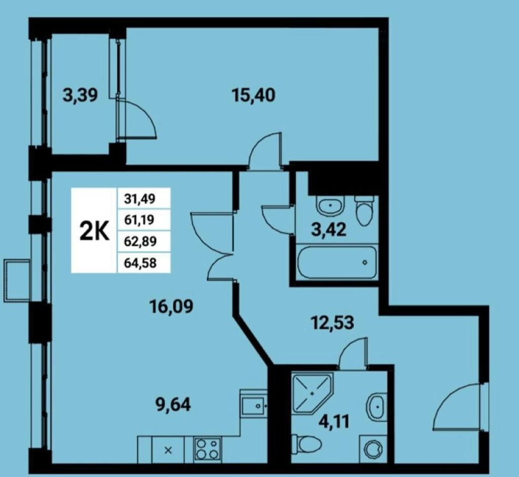 Общая площадь 65 м2