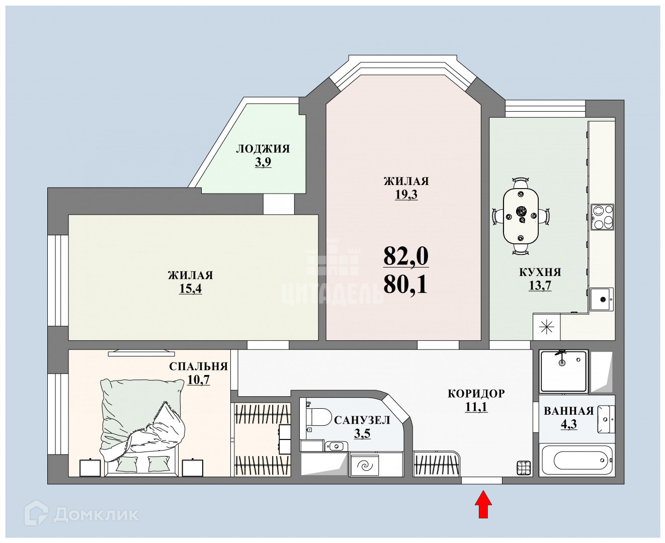Общая площадь 82 м2