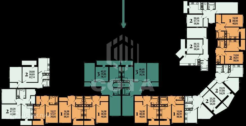 2-комнатная квартира, 58.64 м2, этаж 20 / 25, на продажу в Воронеже, улица Ломоносова, 80