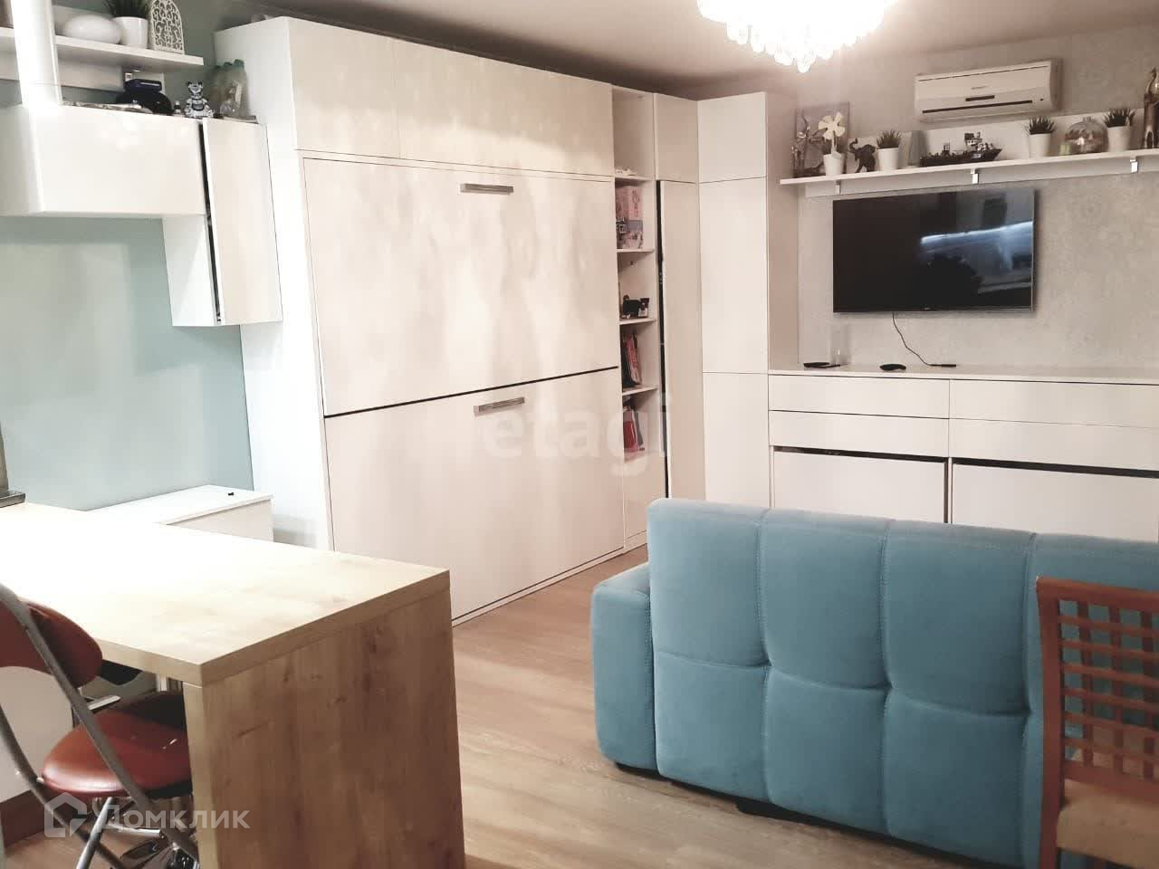 Остаётся кухня, встроенная зона хранения, трансформер-мебель, выполнена по спец заказу.
