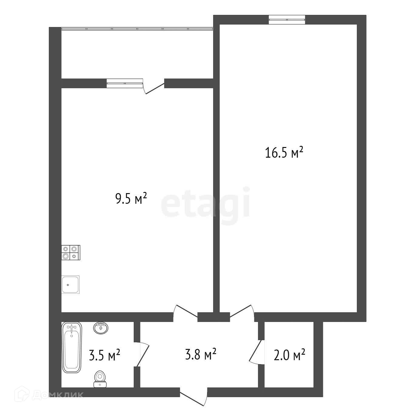 Площадь кухни 9.5 м2