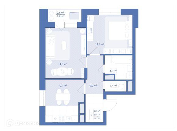 Общая площадь 53.2 м2