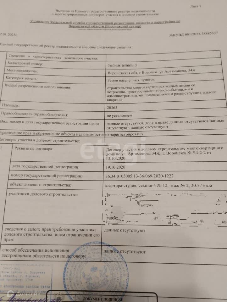 Квартира студия, 20.8 м2, этаж 2 / 10, на продажу в Воронеже, улица Артамонова, 34Ж