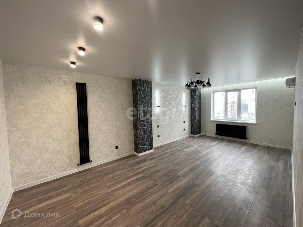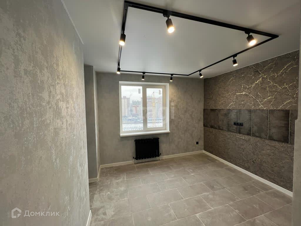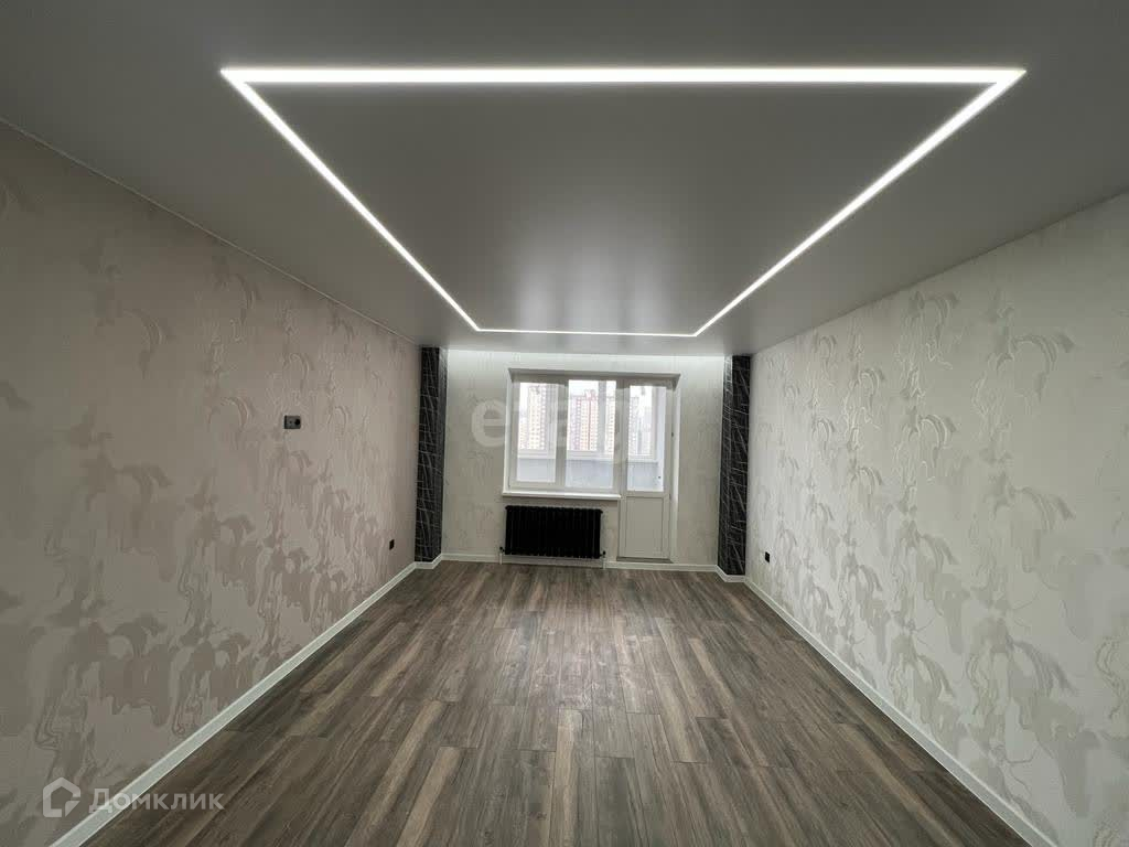 На полу ламинат (33 класс), в ванной керамогранит, теплый пол,в коридоре и на кухне плитка.По всей квартире натяжные потолки, выход на лоджию с комнаты, просторный коридор.