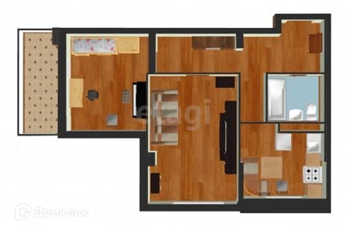 На полу ламинат (33 класс), в ванной керамогранит, теплый пол,в коридоре и на кухне плитка.По всей квартире натяжные потолки, выход на лоджию с комнаты, просторный коридор.