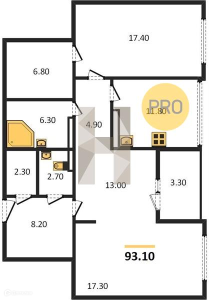 2-комнатная квартира, 92.4 м2, этаж 3 / 25, на продажу в Воронеже, Краснознамённая улица, 57/4