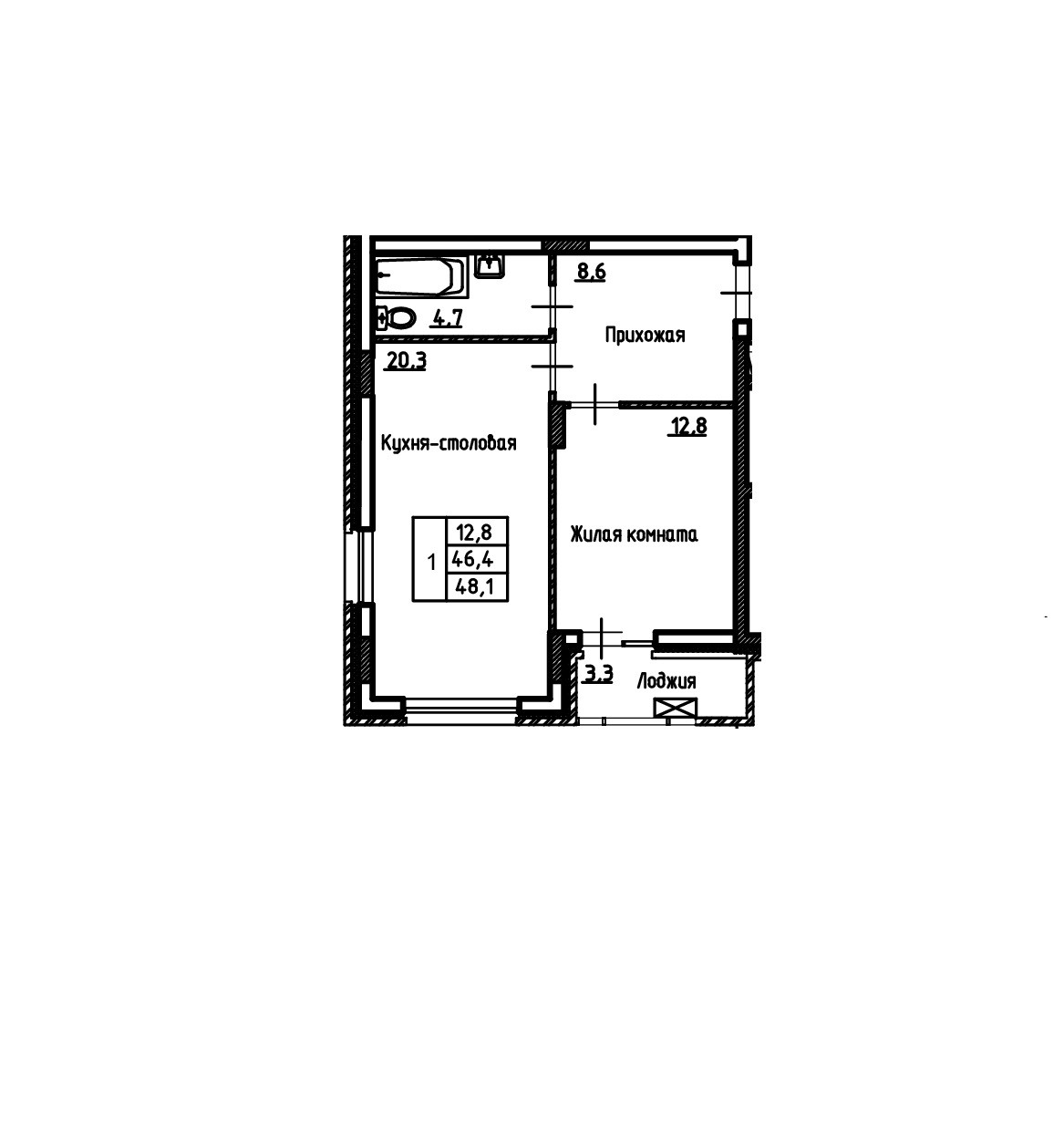 Общая площадь 48.1 м2