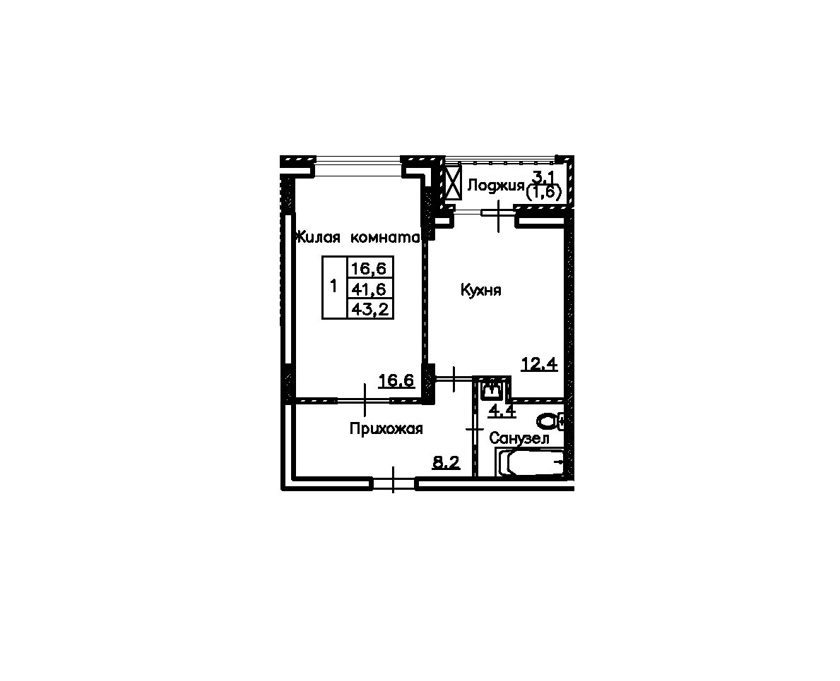 Общая площадь 43.2 м2