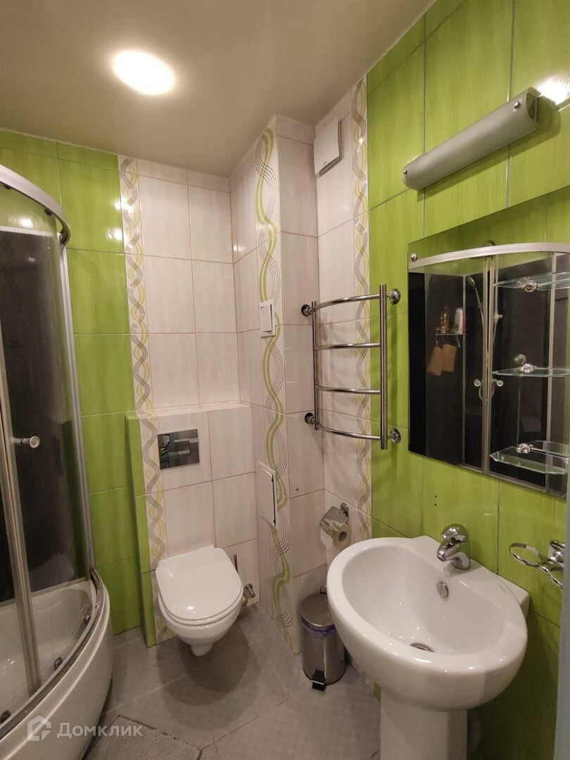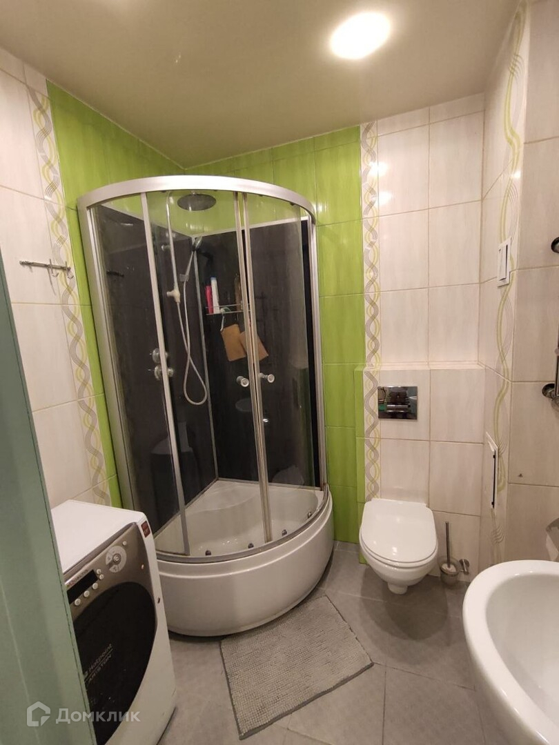 - Санузел совмещён, душевая кабина, стены и пол плитка.