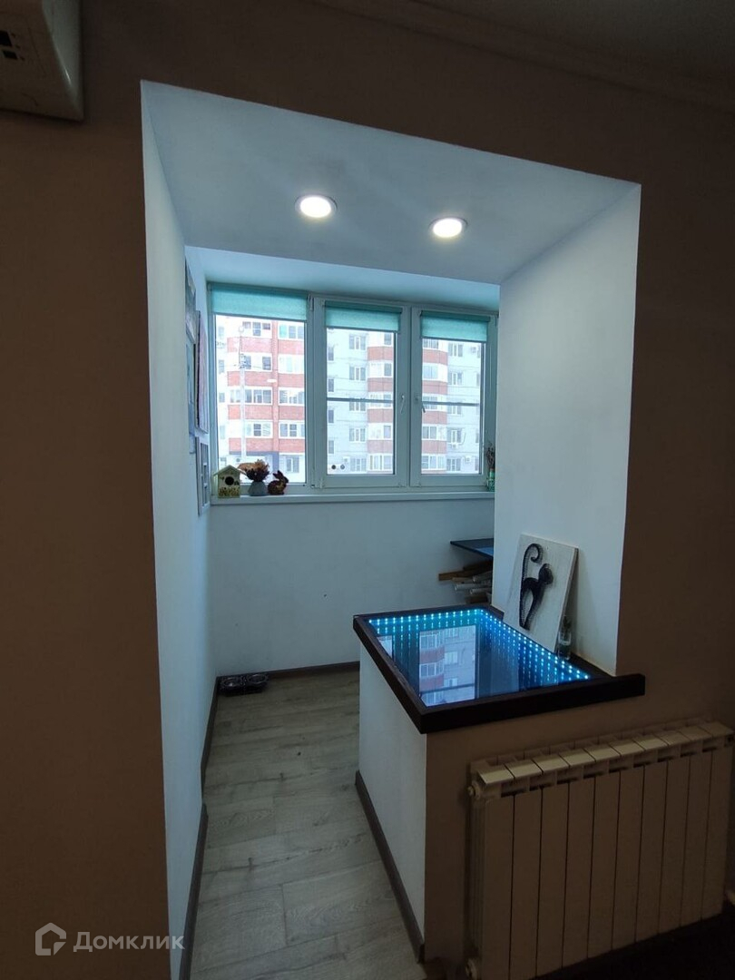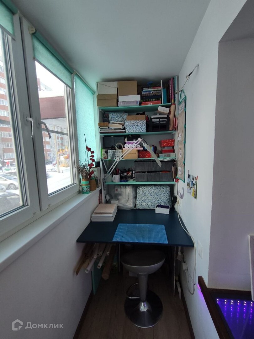 - На лоджии оборудован рабочий кабинет, имеется батарея.