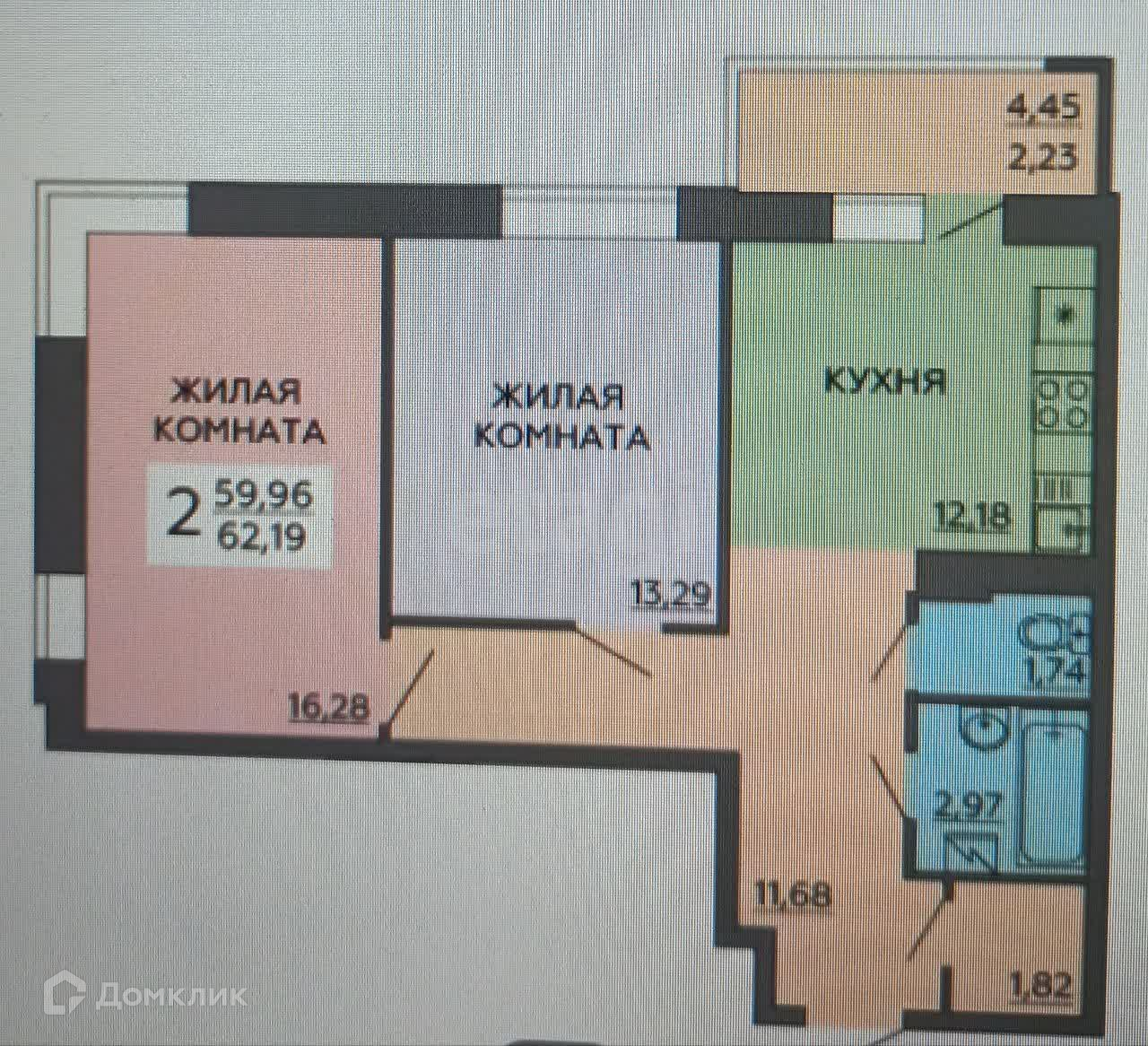 2-комнатная квартира, 65 м2, этаж 6 / 17, на продажу в Воронеже, Московский проспект, 191