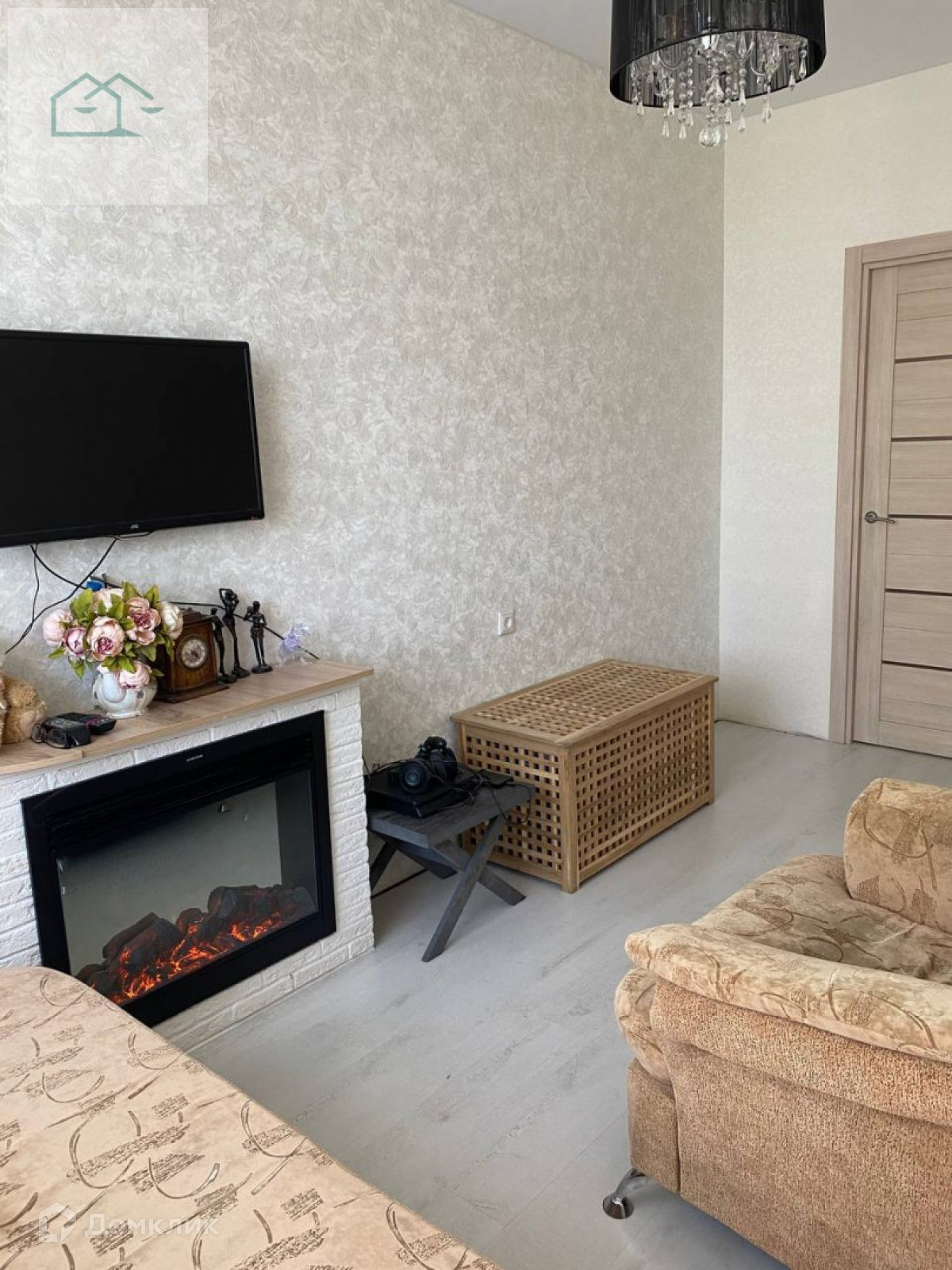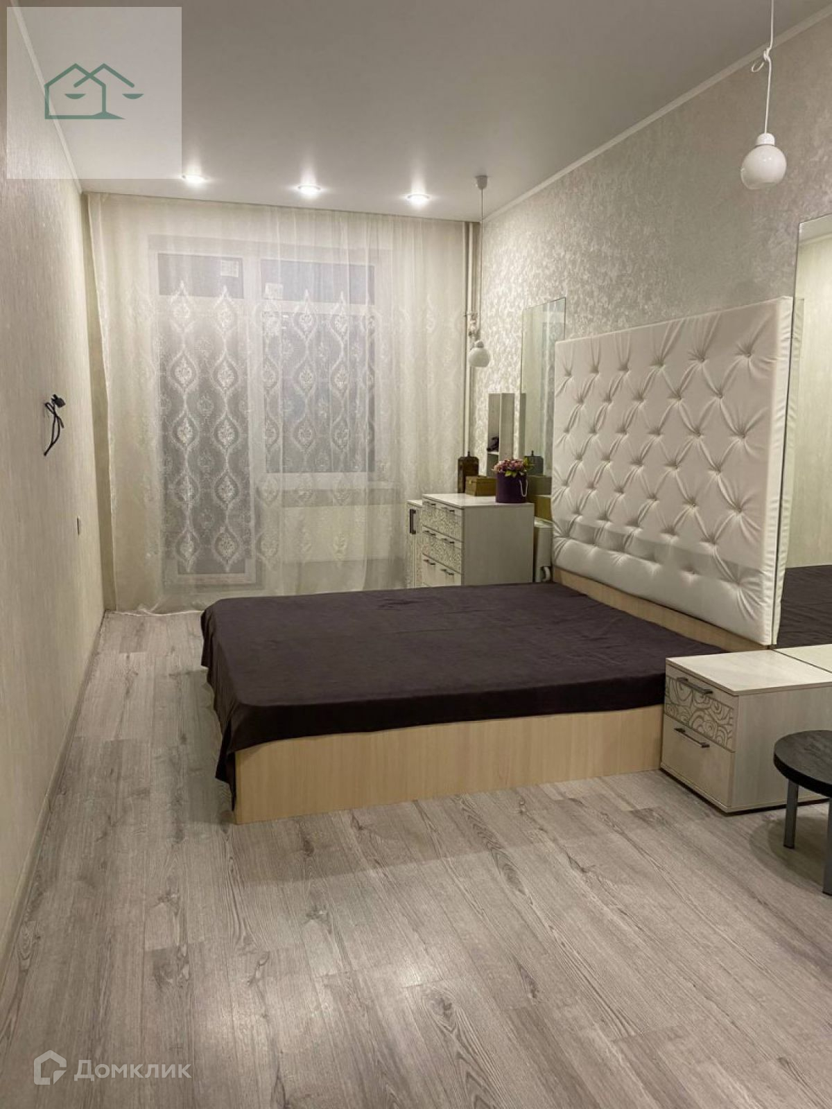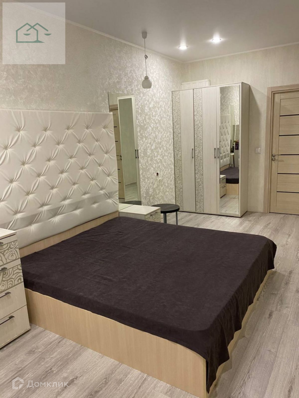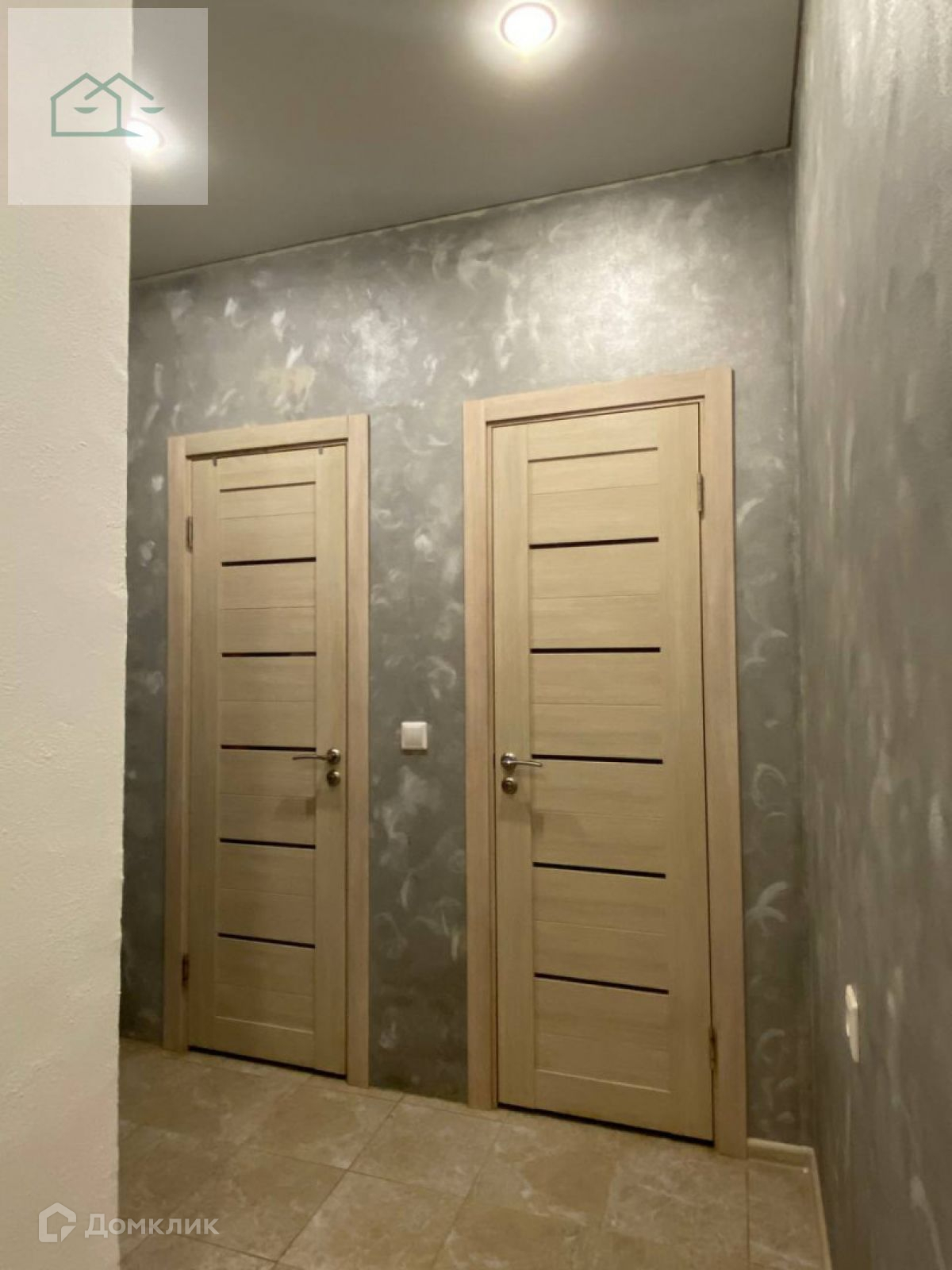 Плитка на полу, на кухне и коридоре. В комнатах ламинат, на стенах фактурная штукатурка и обои. Натяжные потолки во всей квартире, точечное освещение. Качественные межкомнатные двери из экошпона.