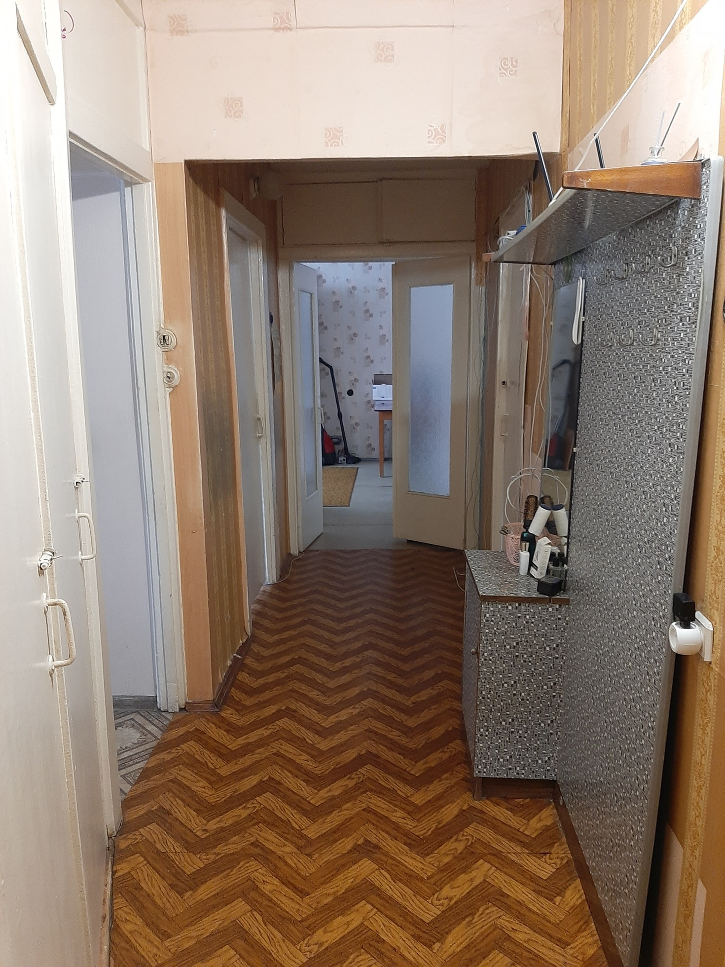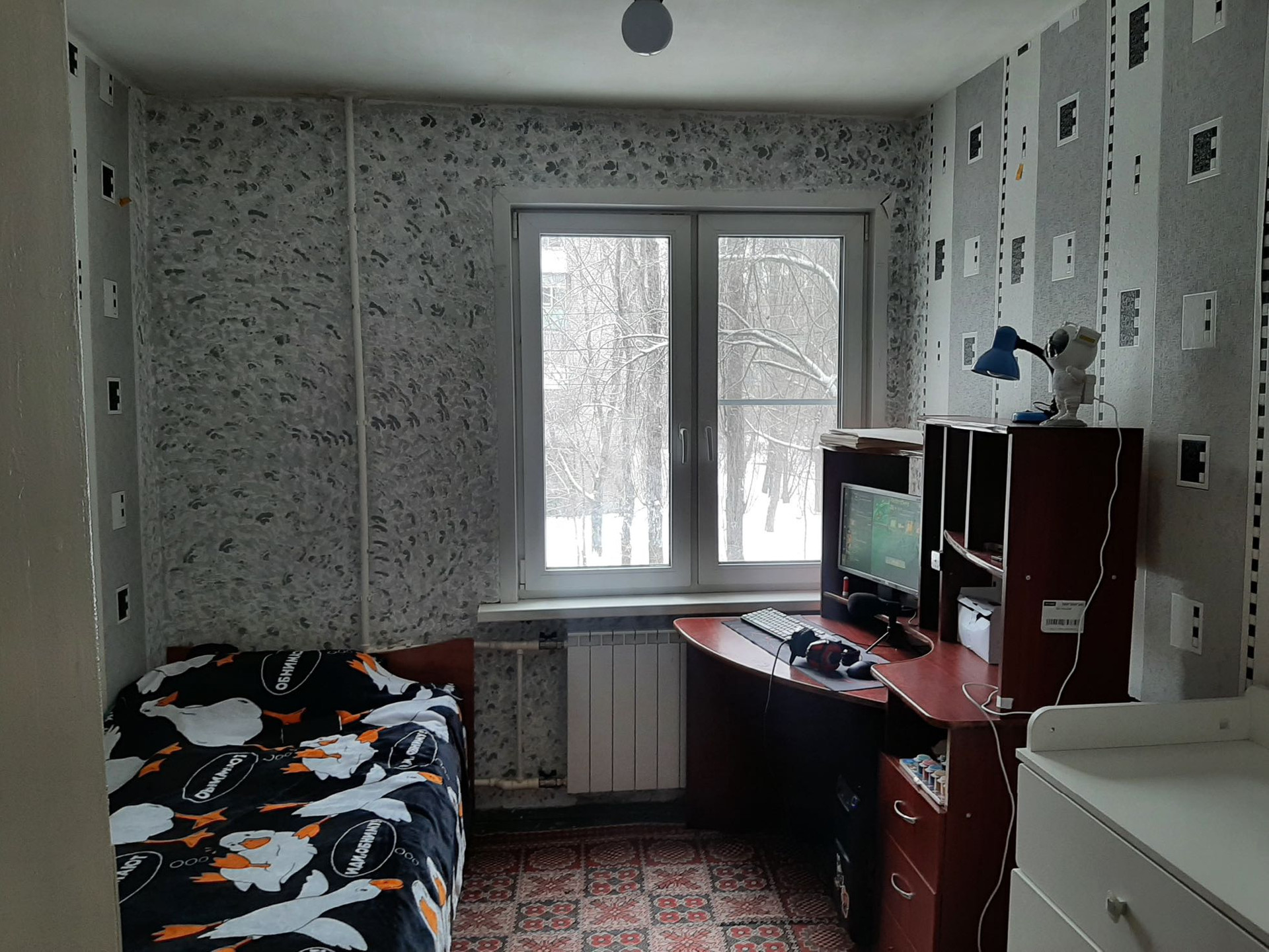 Большая комната проходная, из неё вход в спальню с лоджией + ещё две отдельные комнаты. С/у раздельный. Окна пластик, батареи новые биметаллические. Один собственник
