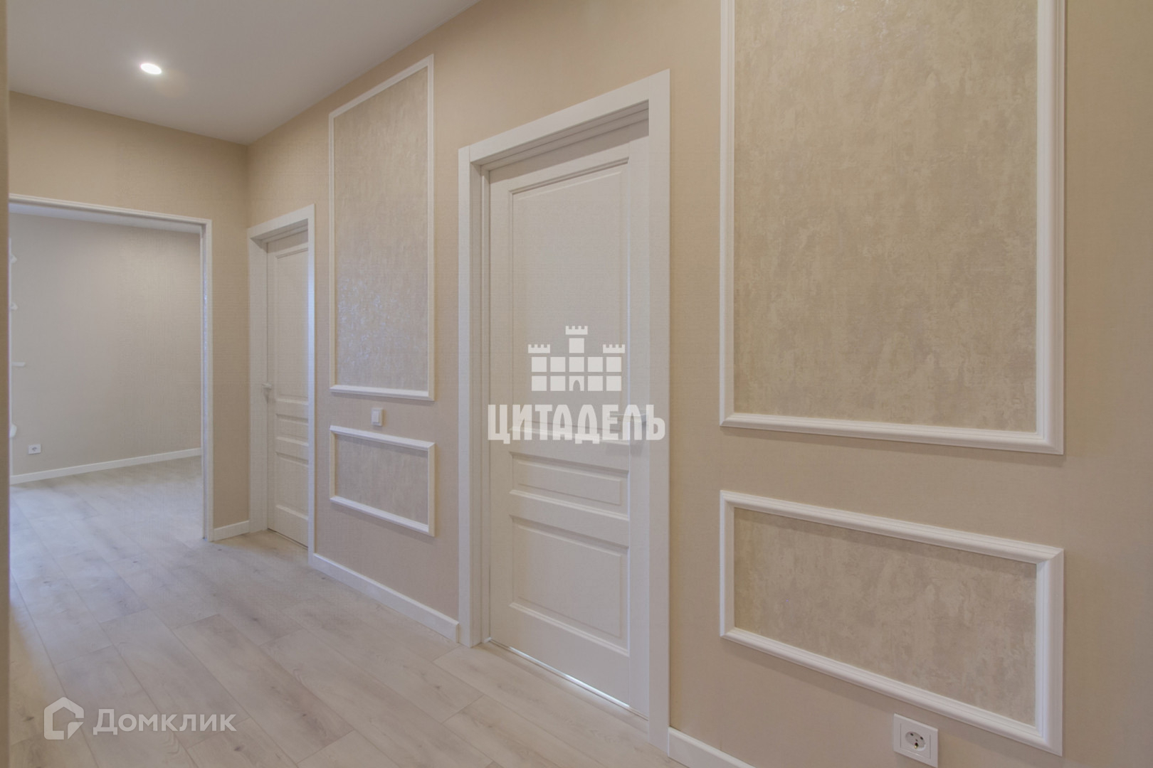 Вся квартира в молочных тонах. За счёт широких окон с заниженными подоконниками и высоким потолком - в комнатах много света.