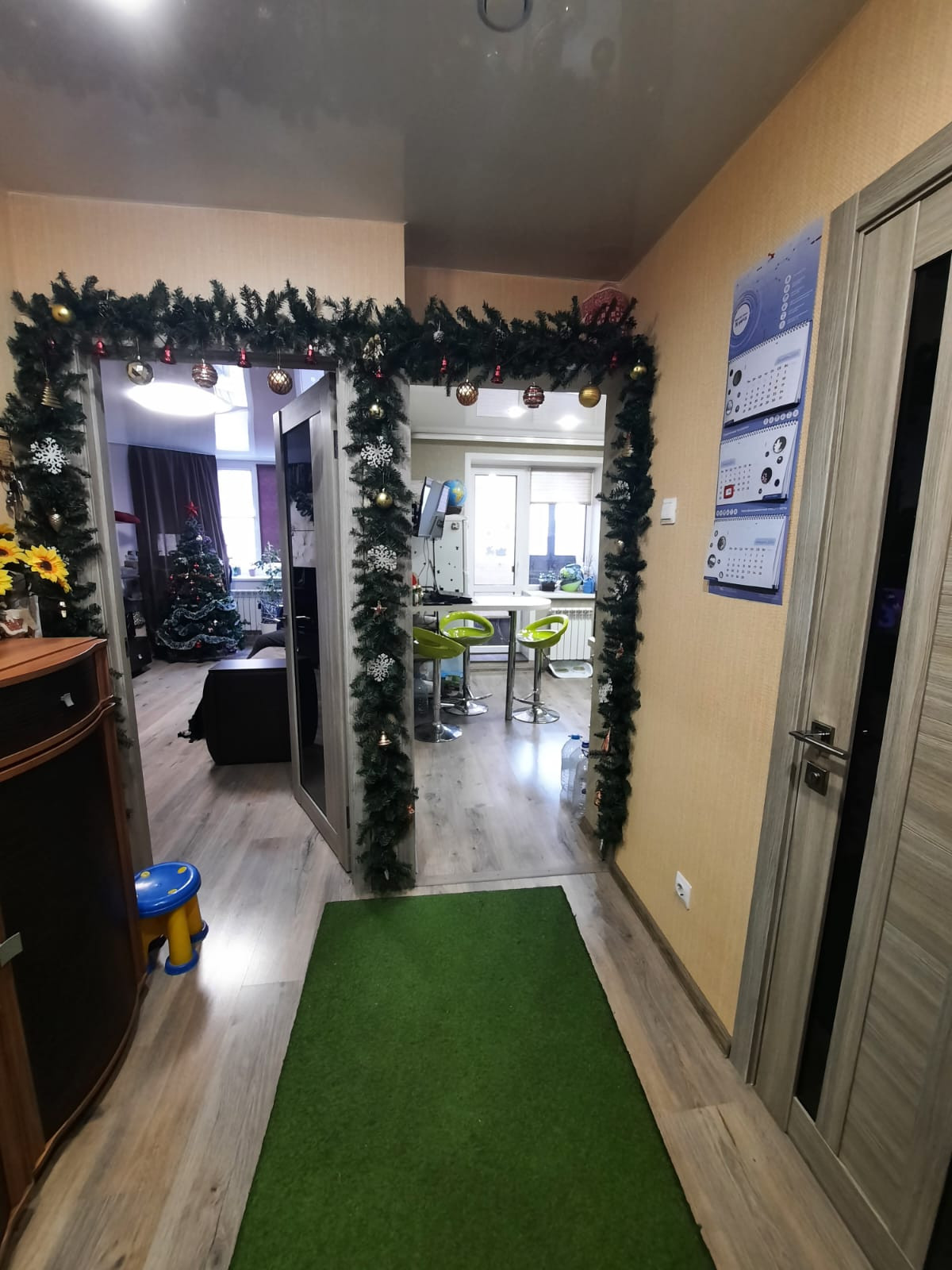 В подарок будущим владельцам остается мебель: стенка в комнате, кухня, прихожая. Из техники: вытяжка, встроенная индукционная плита, подготовлены выходы под посудомойку и водонагреватель. Счетчики проходили поверку в 2023г.