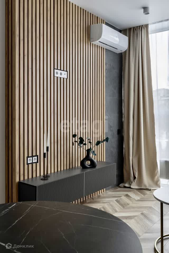 В квартире есть большая кухня гостиная с панорамными окнами, мастер-спальня с собственной ванной комнатой и гардеробной, детская комната, которую можно использовать в качестве кабинета, гостевой сан. узел с ванной и кладовая для хранения вещей.