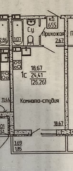 Общая площадь 26.3 м2