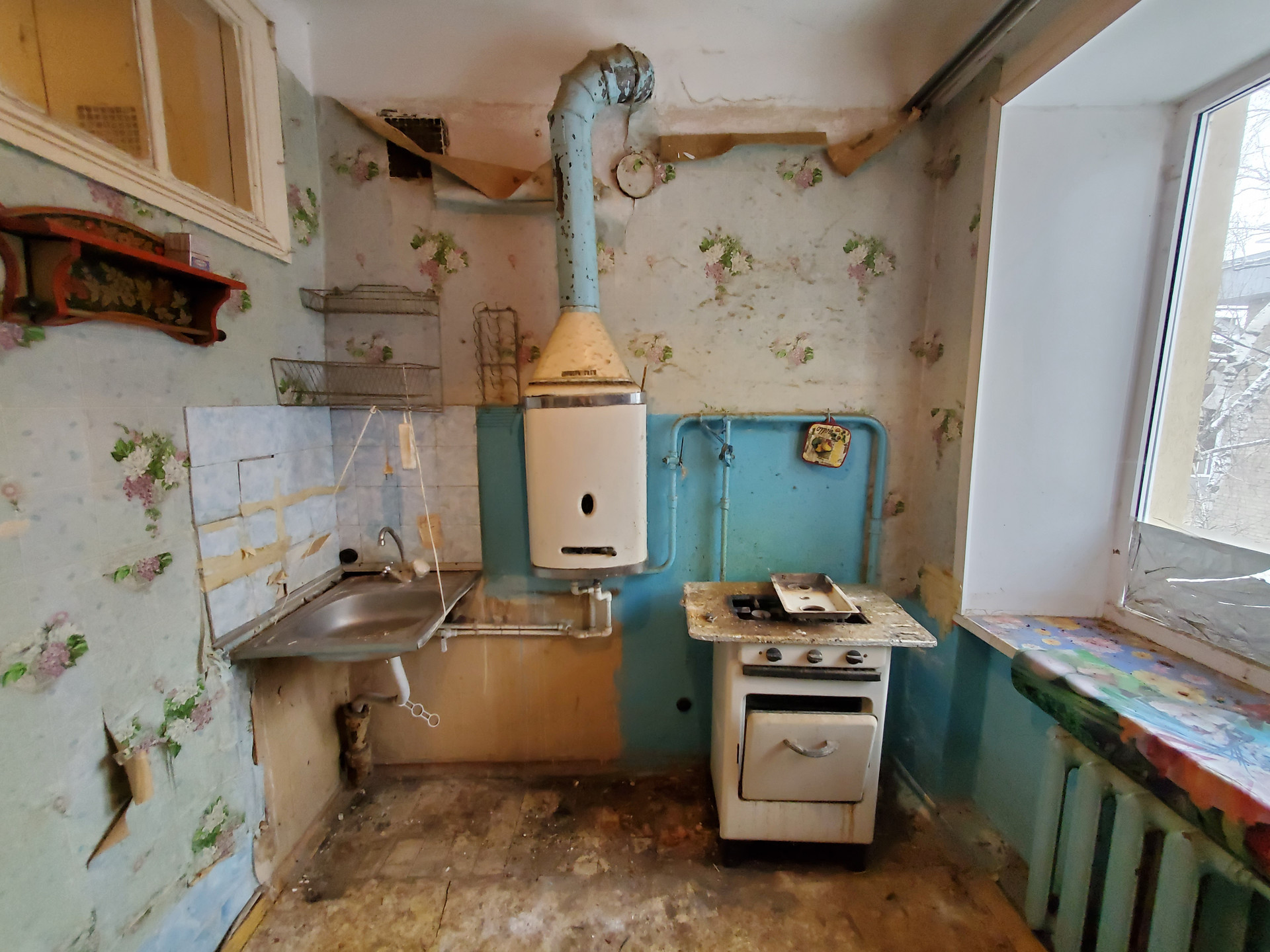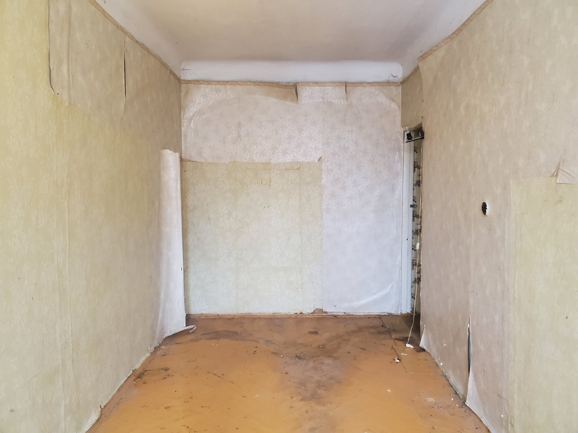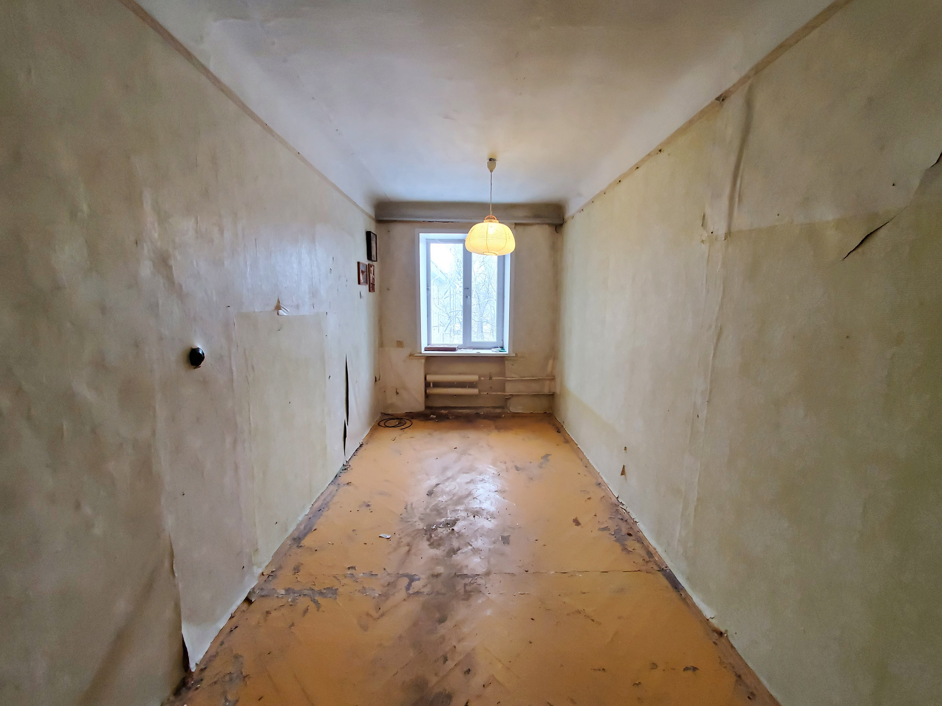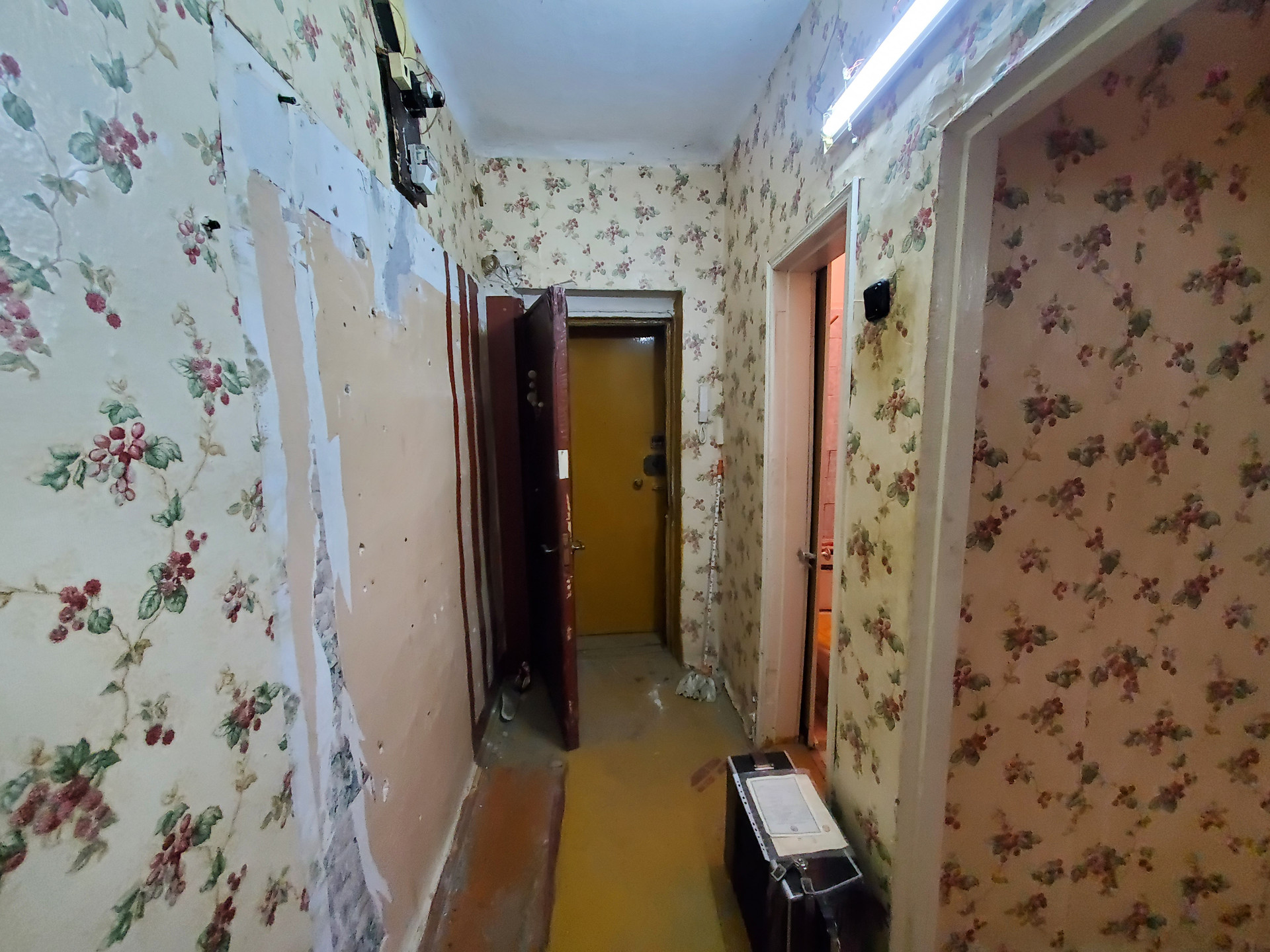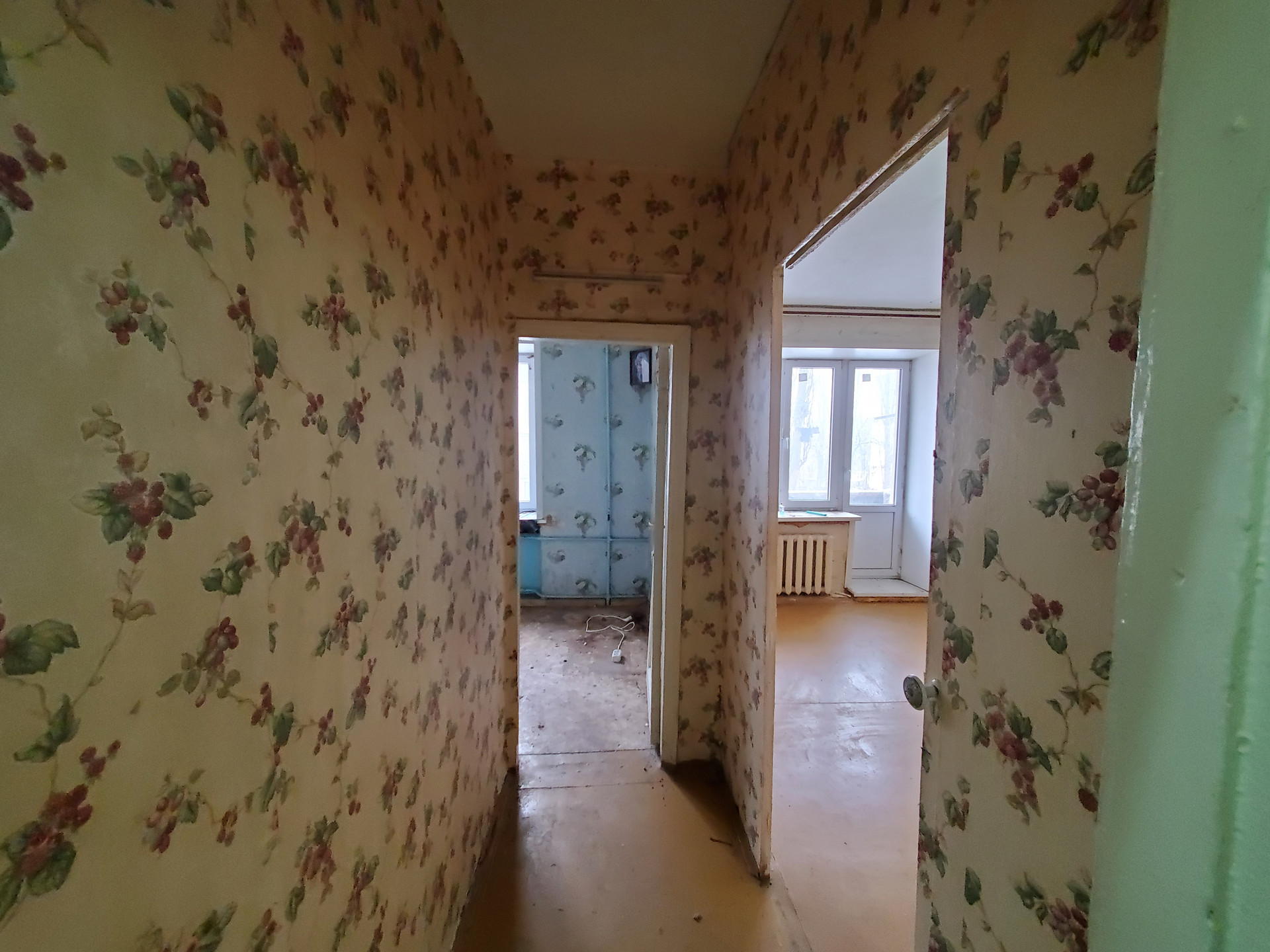 Квартира не угловая, под ремонт. Чистый подъезд, семейные соседи.