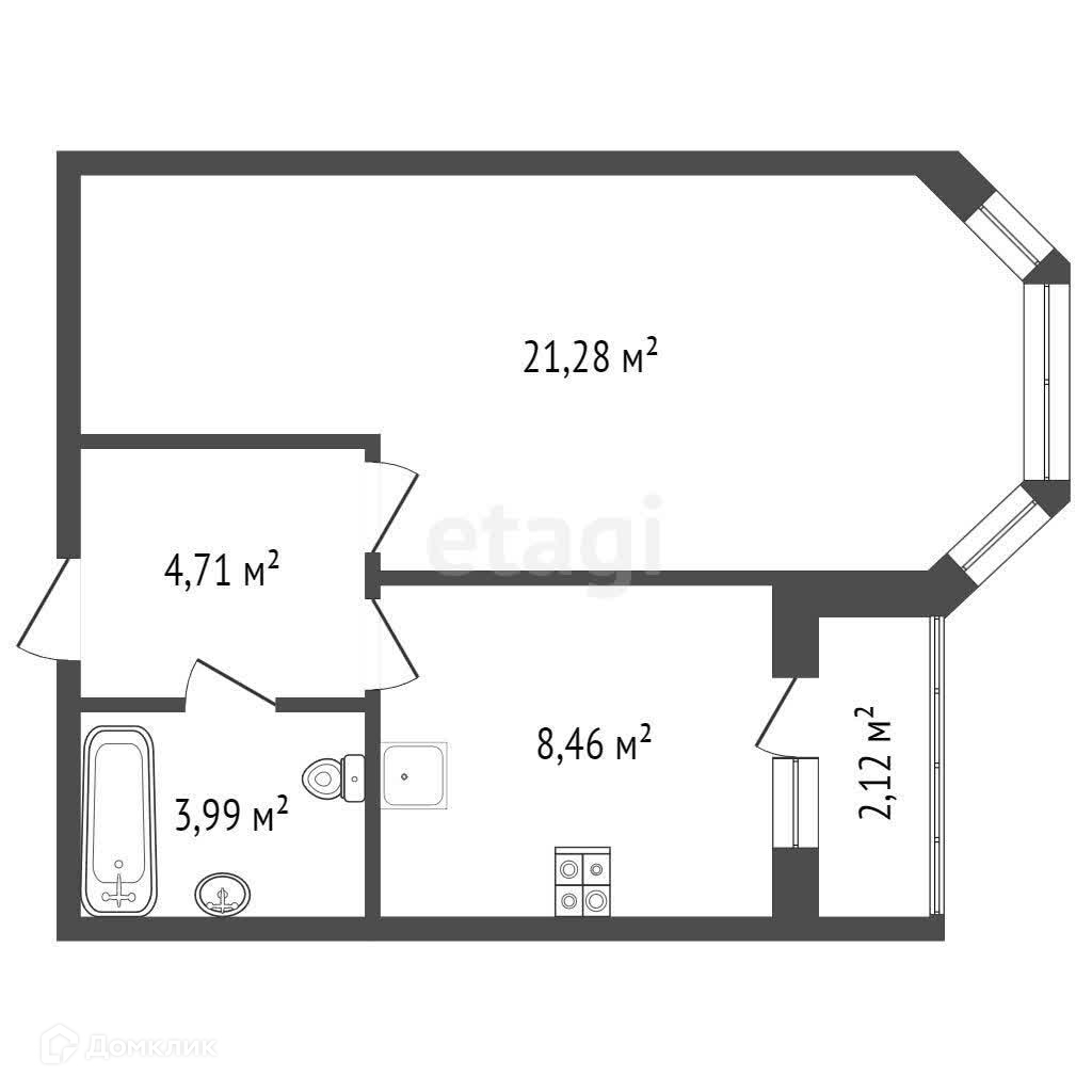 Общая площадь 40.6 м2