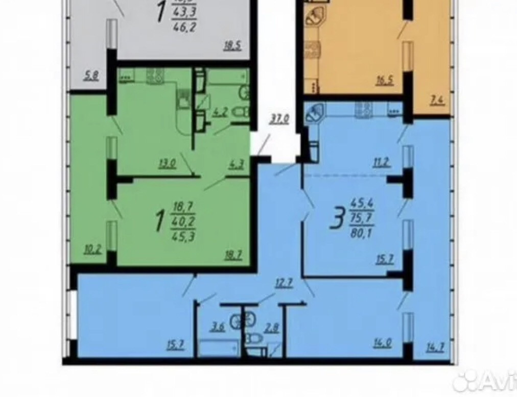 Общая площадь 80.1 м2
