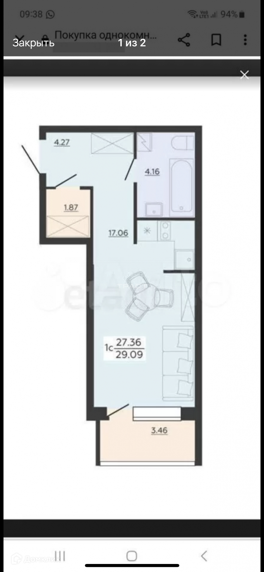 Общая площадь 29.09 м2