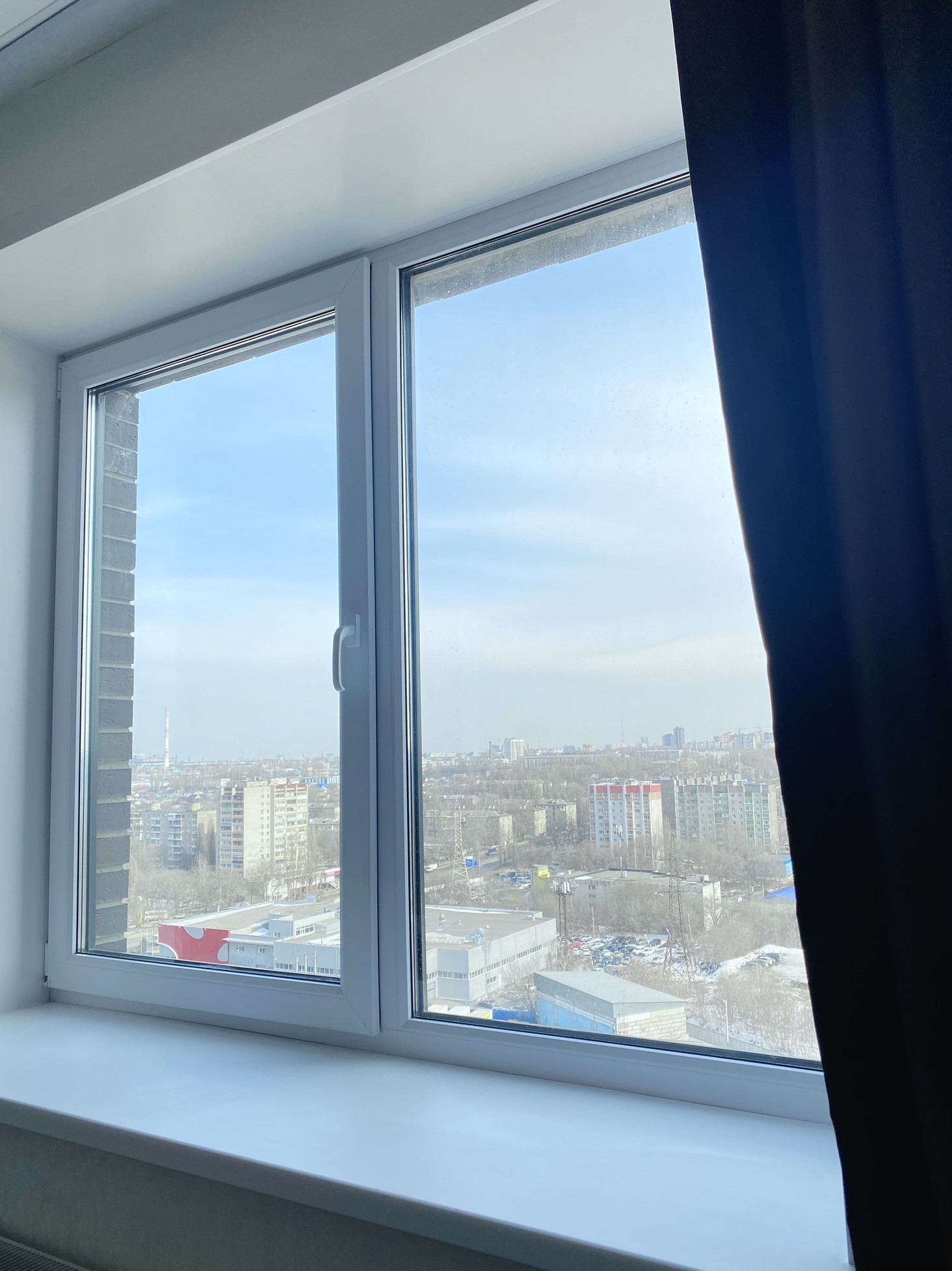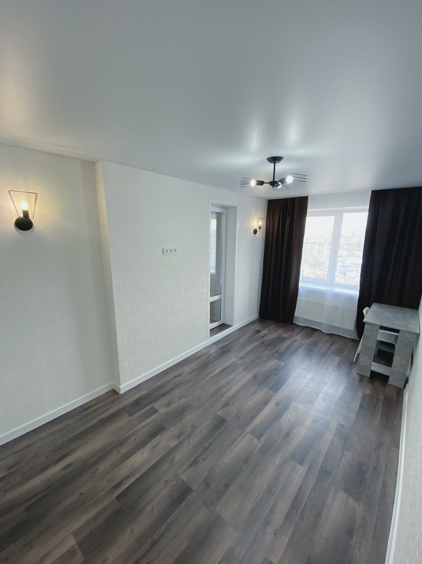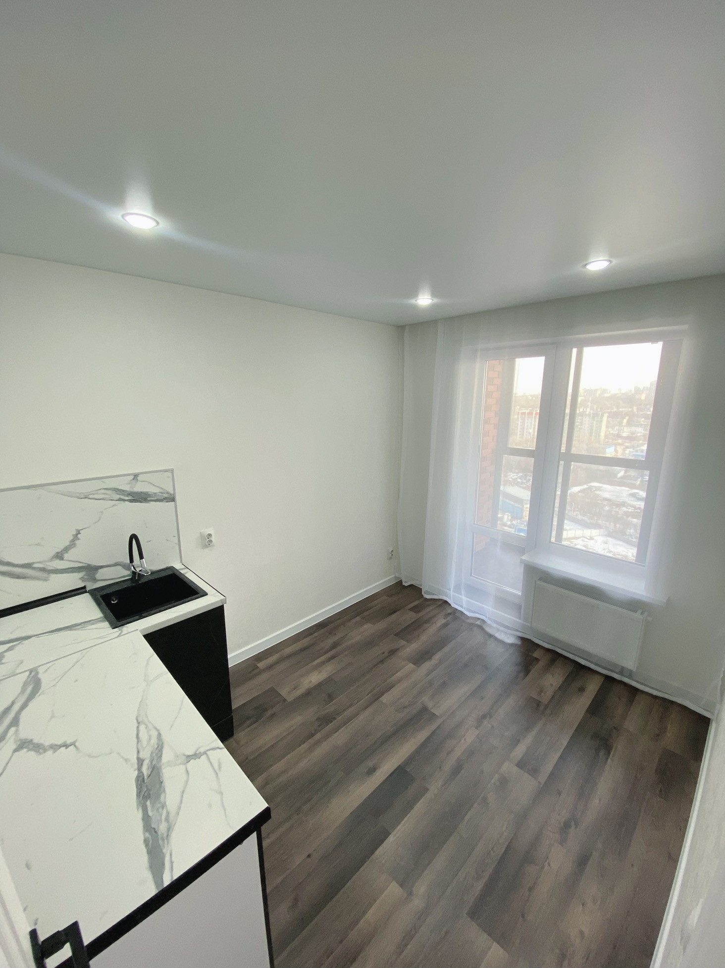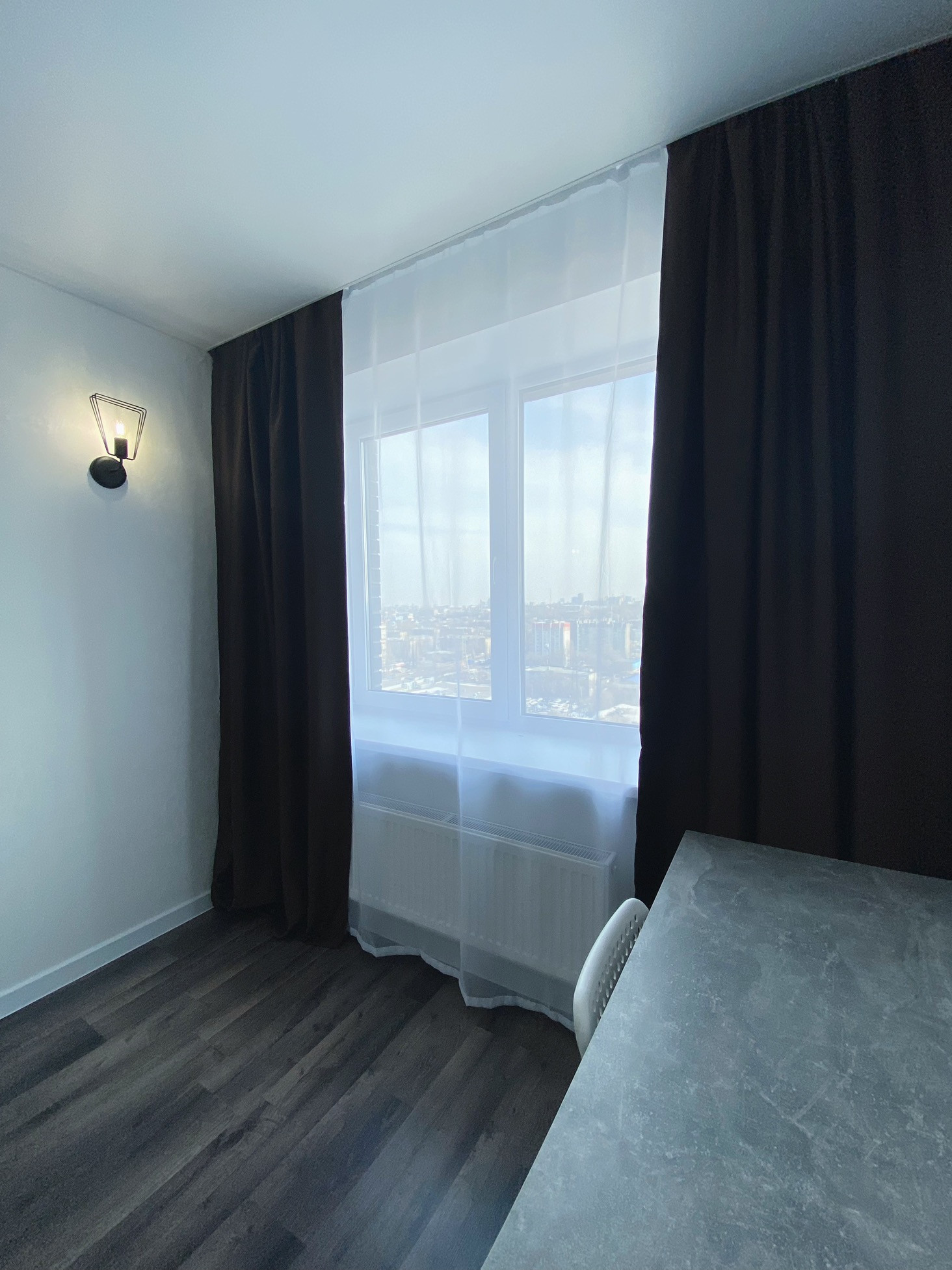 Абсолютно новая квартира с прекрасным видом на город как днем так и вечером .