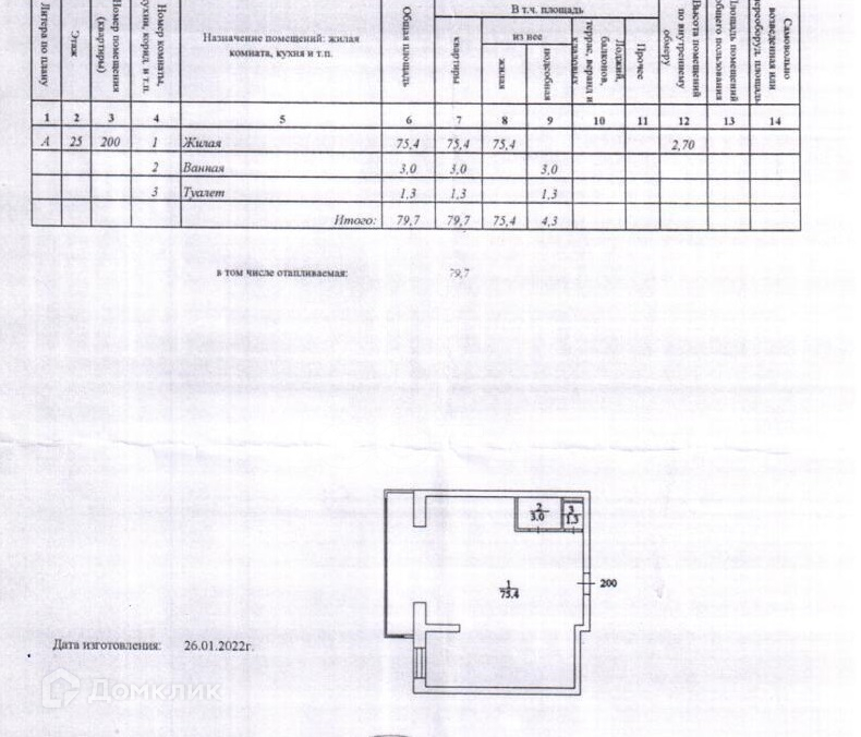 Жилая площадь 75.4 м2