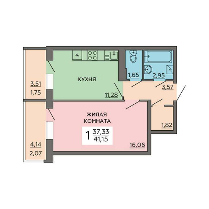 Общая площадь 41.15 м2