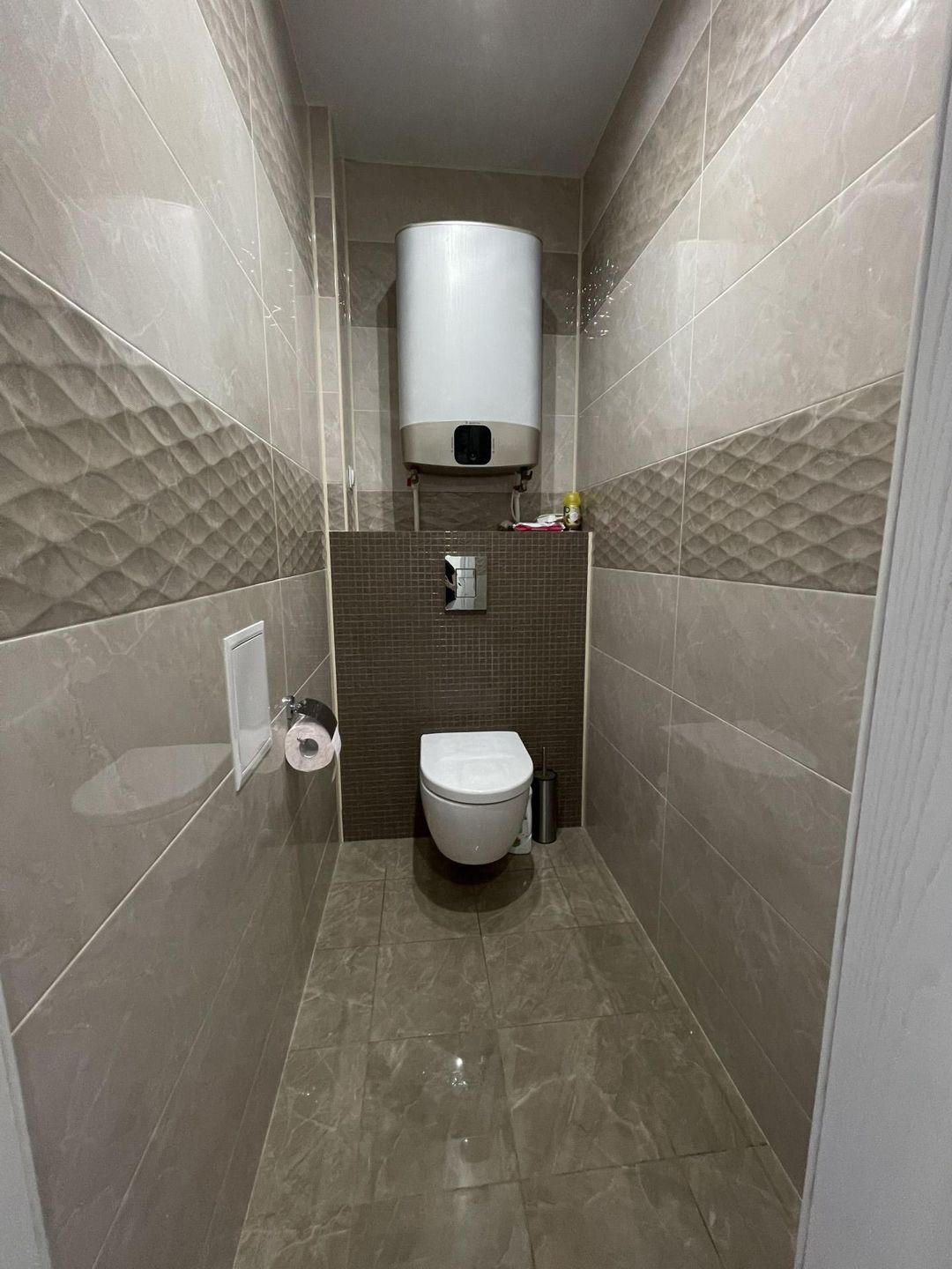 Туалет площадью 2.2 м2. Плитка Kerama Marazzi, инсталляция Crohe, подвесной безободковый унитаз  Keramag, бойлер Ariston 50 литров.