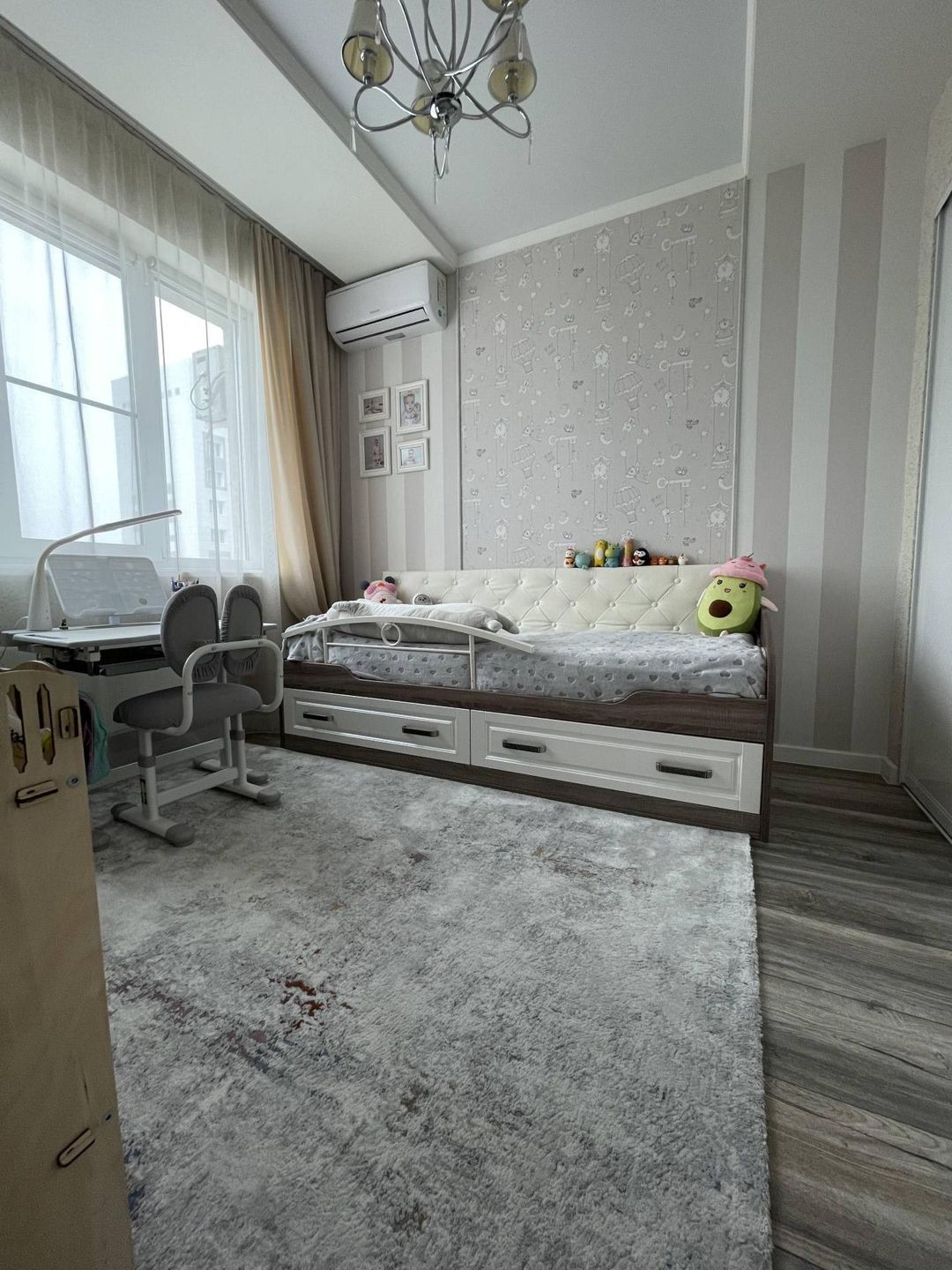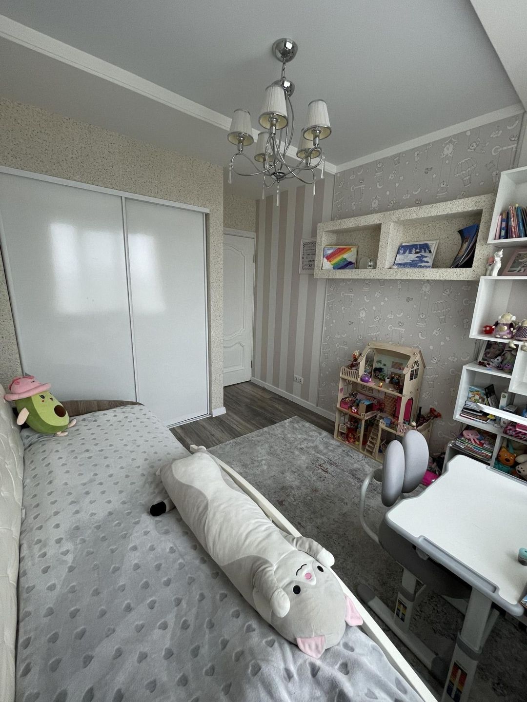 Детская  площадью 11.2 м2. Встроенный шкаф, кровать, стеллаж.