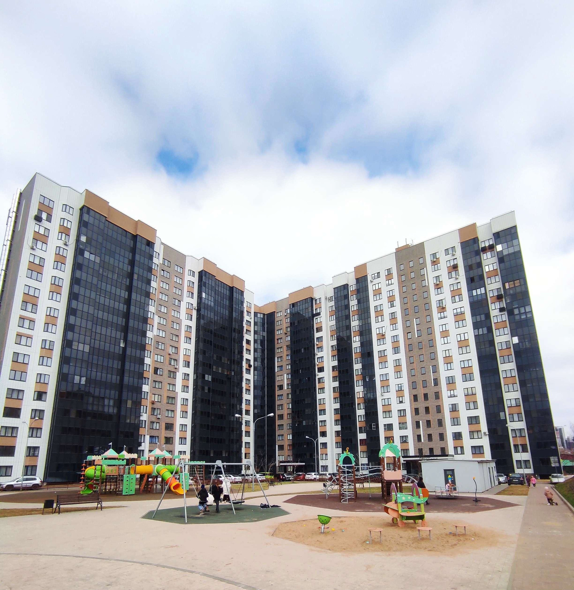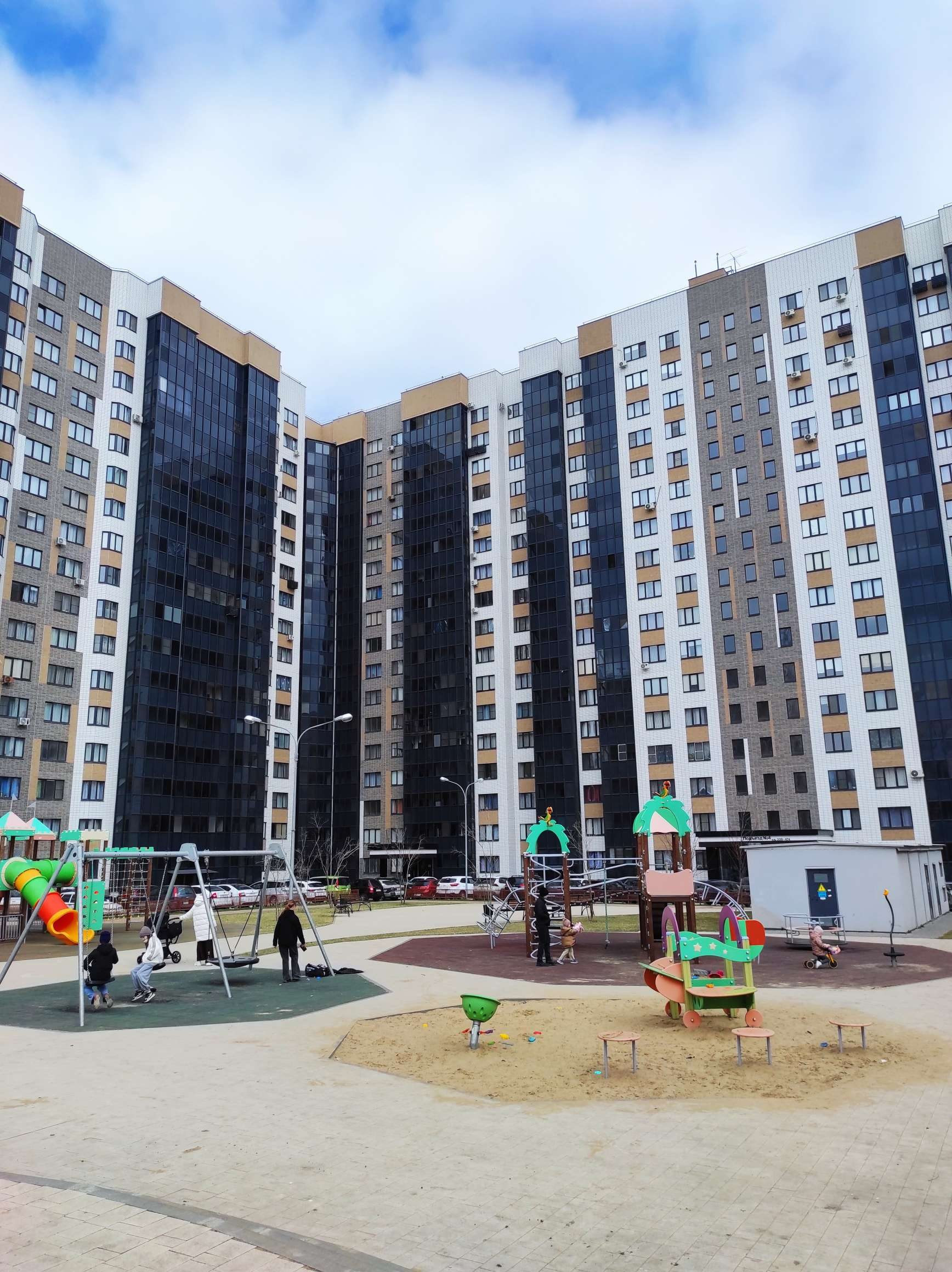 Двор обустроен большой детской площадкой с мягким покрытием, спортивными тренажёрам, беседка  для отдыха, места для парковки.