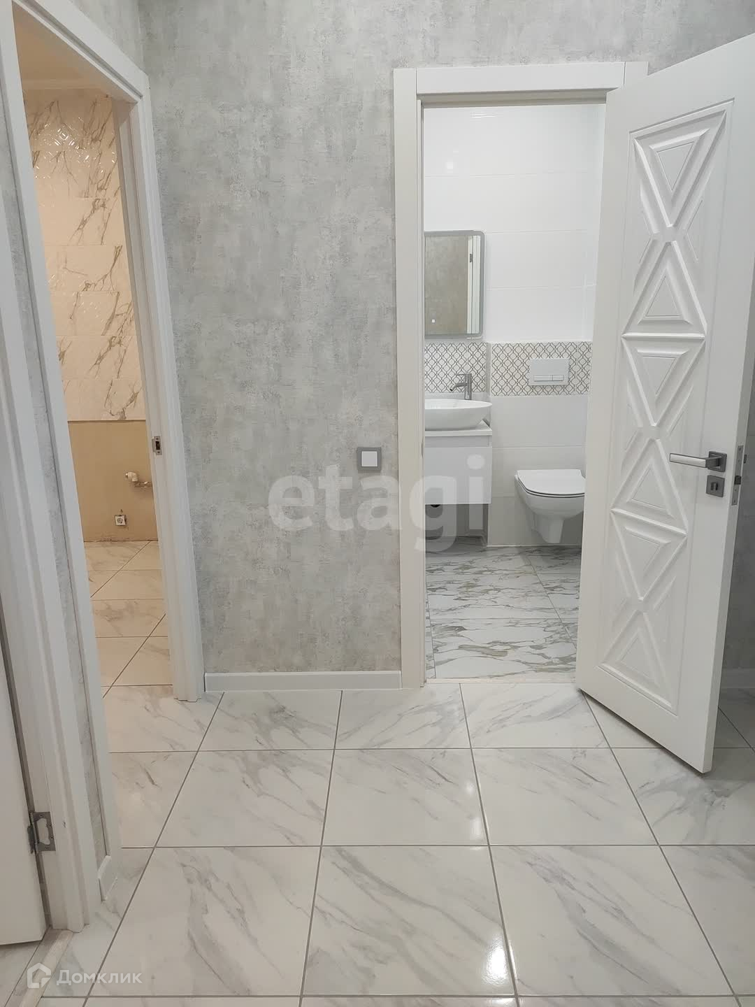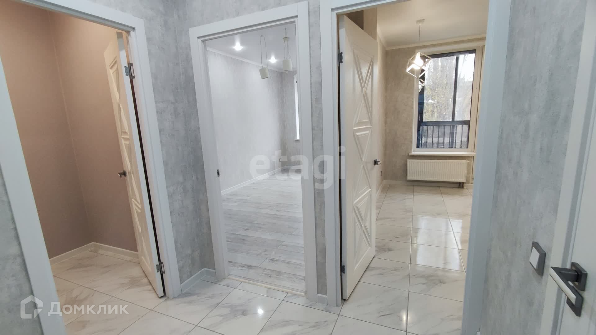 Интерьер квартиры выполнен в современном стиле: пол в коридоре, санузле и на кухне отделан плиткой, в комнате уложен ламинат. Санузел украшен современной керамической плиткой, установлена новая сантехника и смесители. Стильные межкомнатные двери. Входная дверь металлическая. Дополнительный комфорт создают натяжные потолки со встроенными светильниками, обои высокого качества и смонтированные розетки и выключатели.