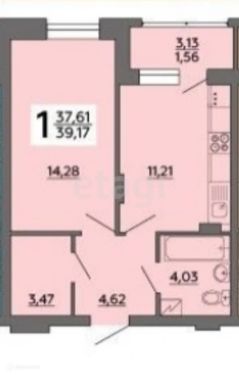 Общая площадь 39 м2