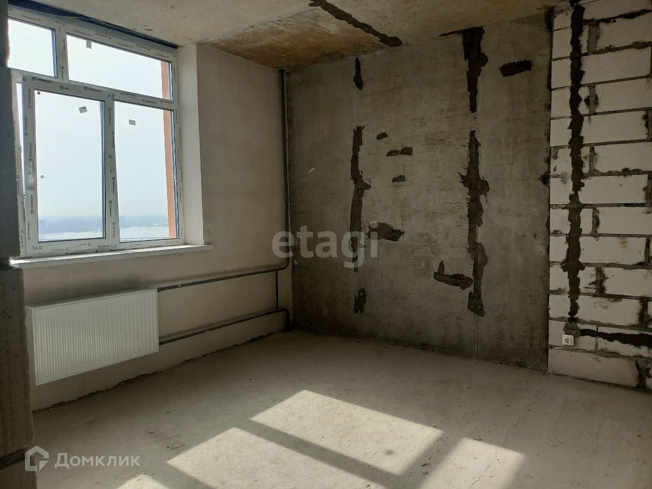 В квартире черновая отделка, разведено электричество, присутствуют радиаторы отопления.