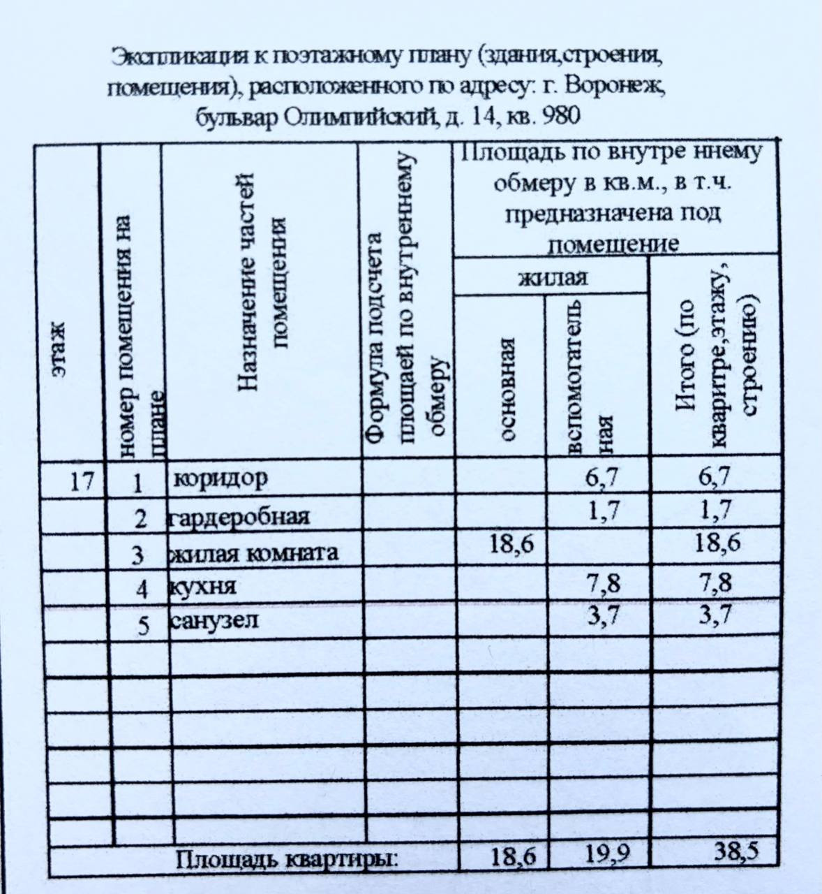 Общая площадь: 38,5 м