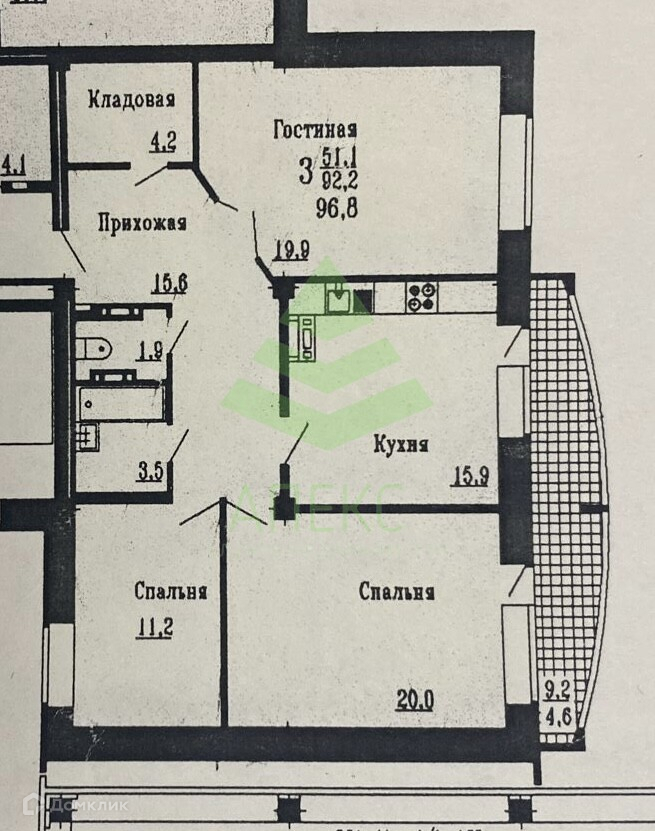 Общая площадь 92.3 м2