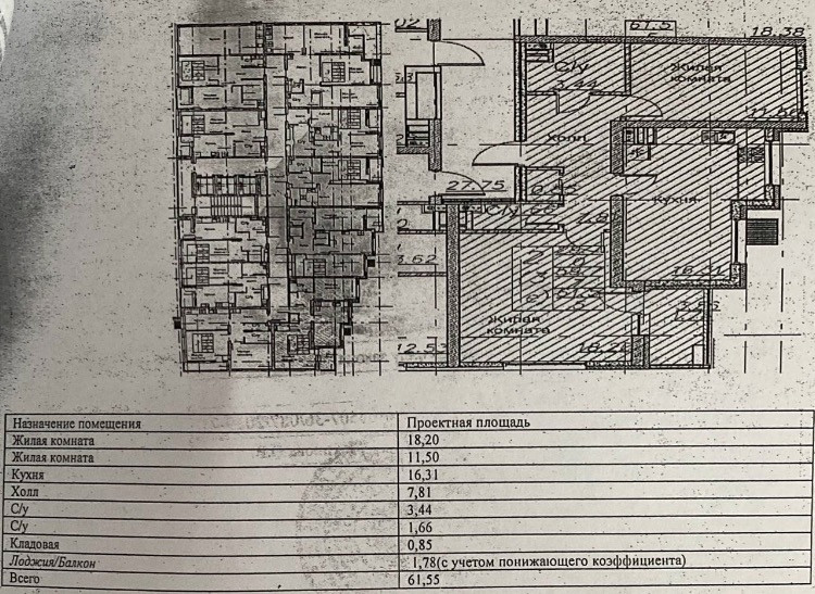 Общая площадь 61.6 м2