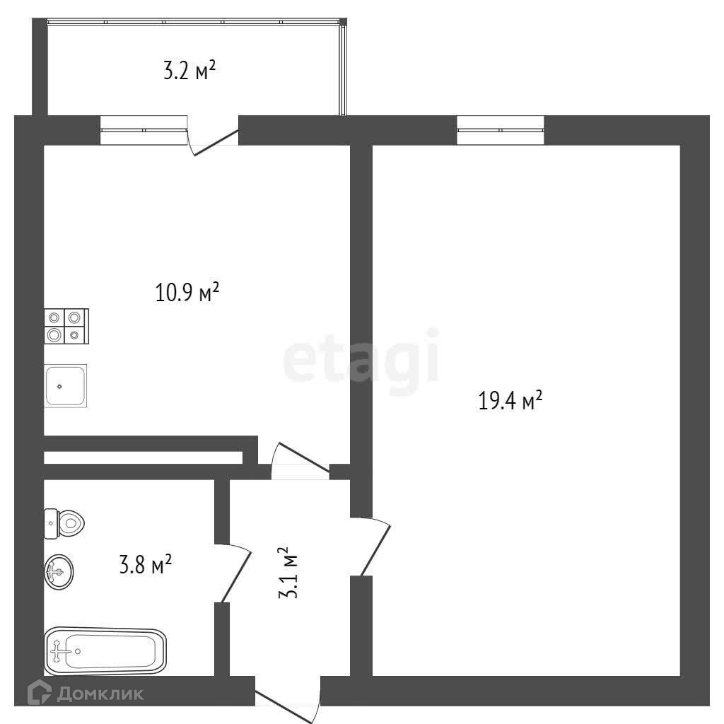 Общая площадь 40.4 м2
